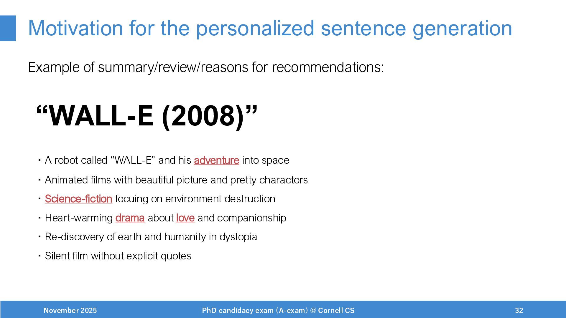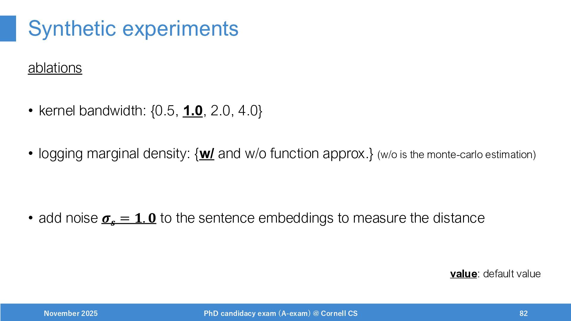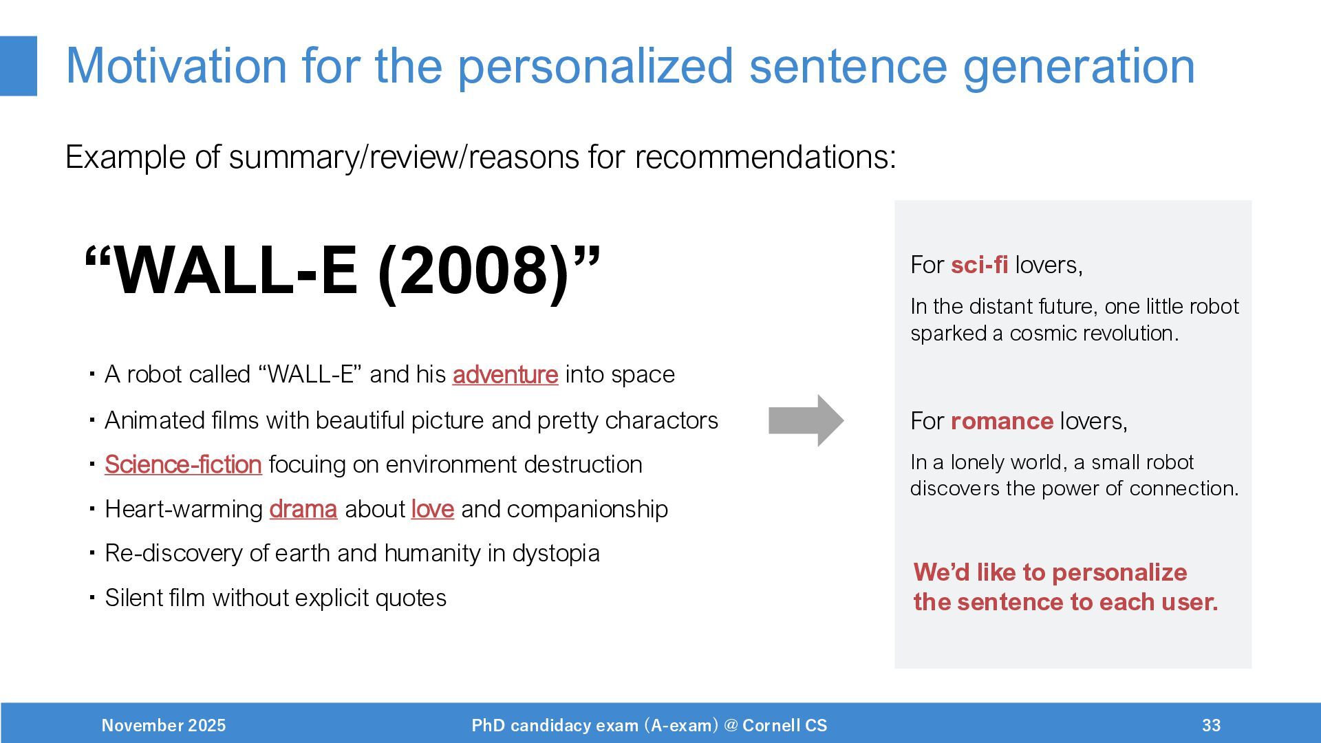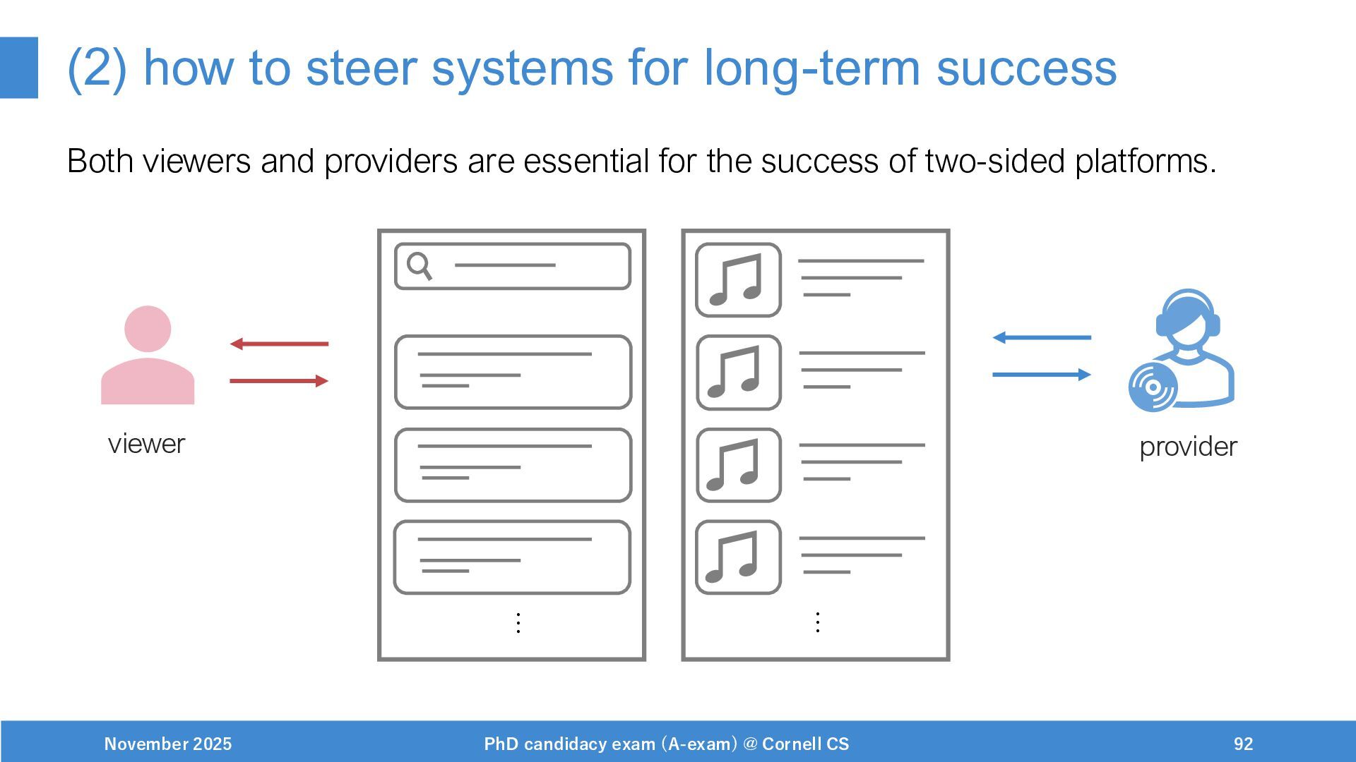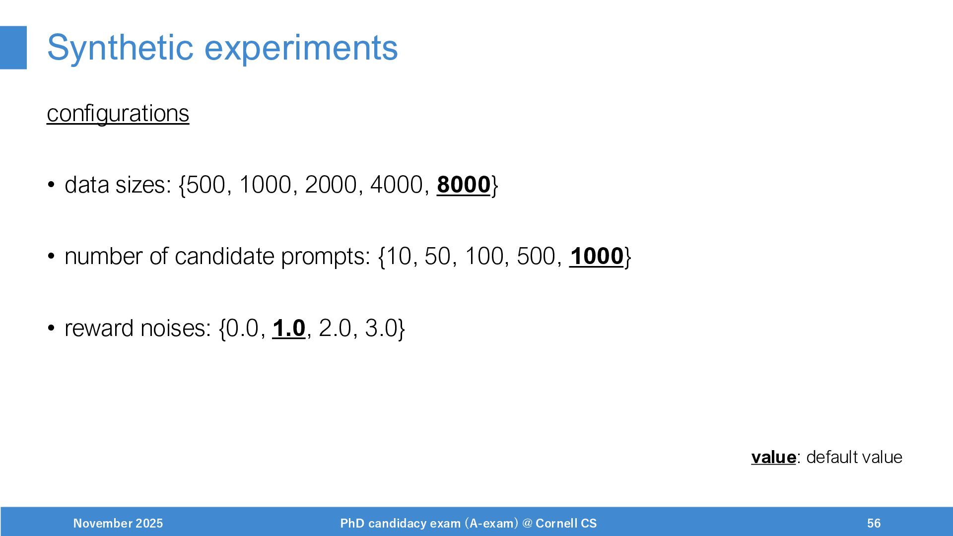 NeurIPS, 1999. [Swaminathan&Joachims,16] Adith Swaminathan and Thorsten Joachims. Batch learning from logged bandit feedback through counterfactual risk minimization. JMLR, 2016. [Dudík+,11] Miroslav Dudík, John Langford, and Lihong Li. Doubly robust policy evaluation and learning. ICML, 2011. [Saito+,24] Yuta Saito, Jihan Yao, and Thorsten Joachims. Potec: Off-policy learning for large action spaces via two-stage policy decomposition. 2024. [Brown+,20] Tom Brown, Benjamin Mann, Nick Ryder, Melanie Subbiah, Jared Kaplan, Prafulla Dhariwal, Arvind Neelakantan, Pranav Shyam, Girish Sastry, Amanda Askell, Sandhini Agarwal, Ariel Herbert-Voss, Gretchen Krueger, Tom Henighan, Rewon Child, Aditya Ramesh, Daniel M. Ziegler, Jeffrey Wu, Clemens Winter, Christopher Hesse, Mark Chen, Eric Sigler, Mateusz Litwin, Scott Gray, Benjamin Chess, Jack Clark, Christopher Berner, Sam McCandlish, Alec Radford, Ilya Sutskever, and Dario Amodei. Language models are few-shot learners. NeurIPS, 2020. November 2025 PhD candidacy exam (A-exam) @ Cornell CS 100