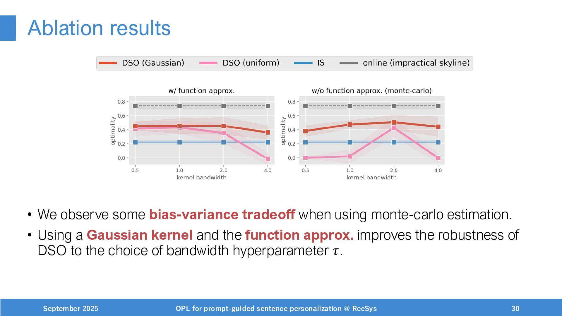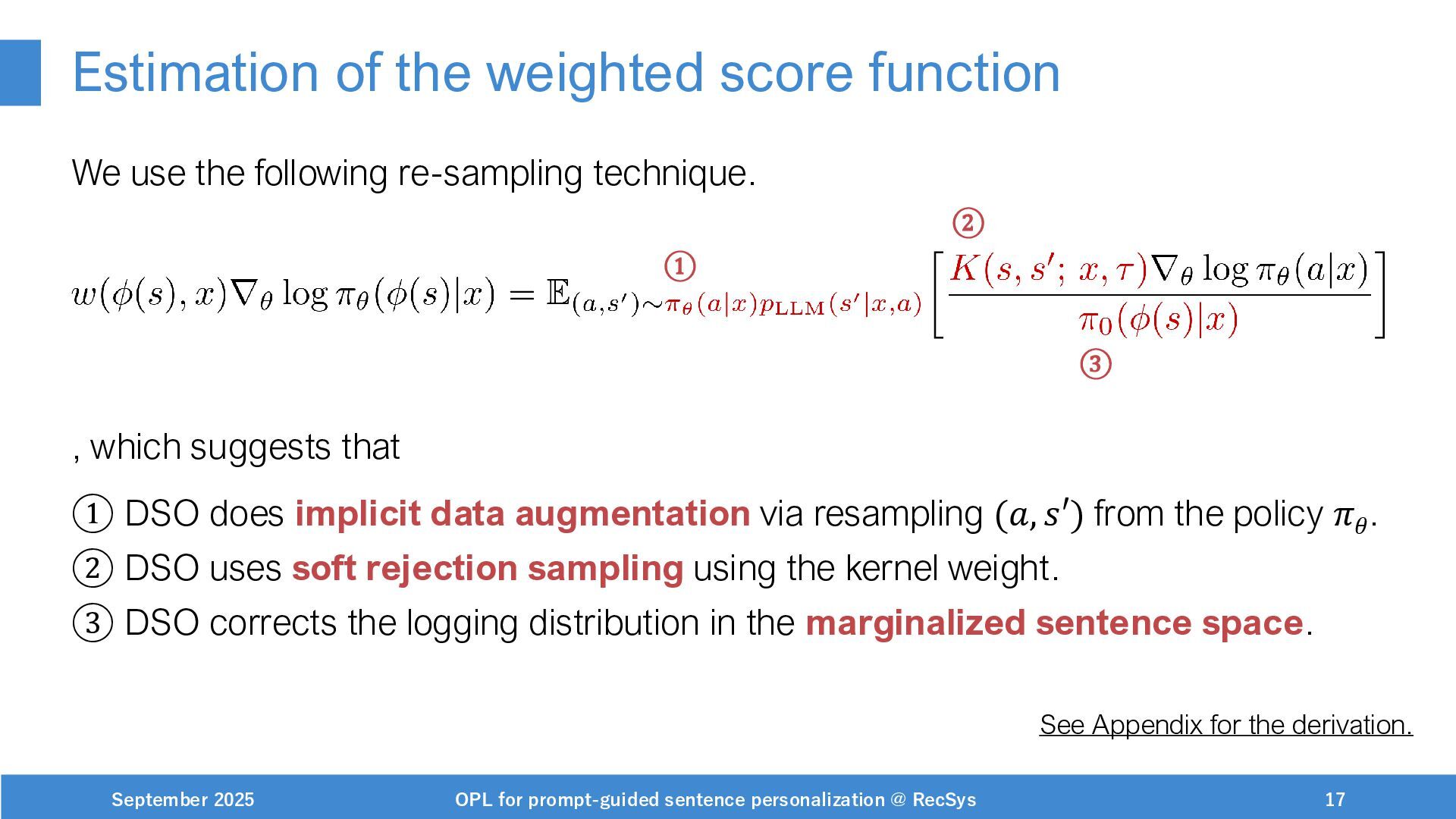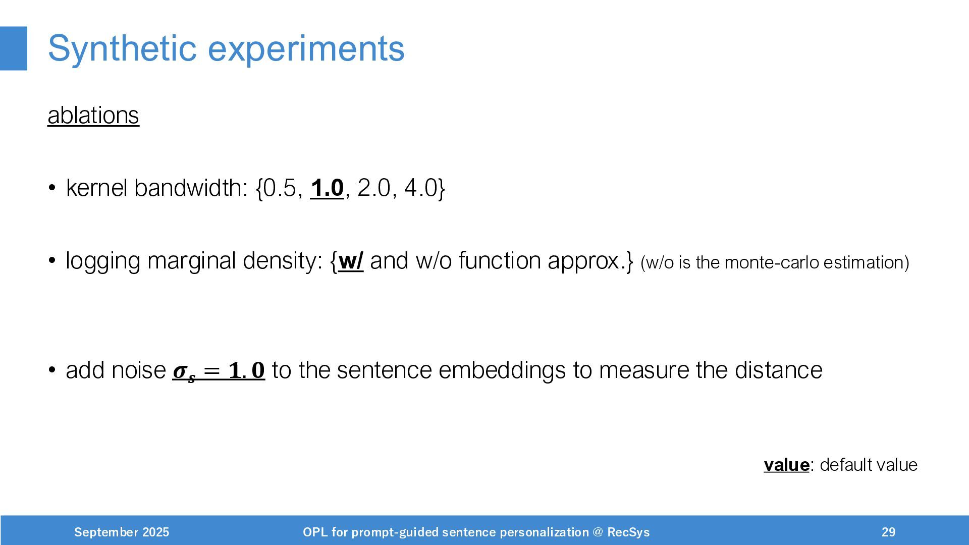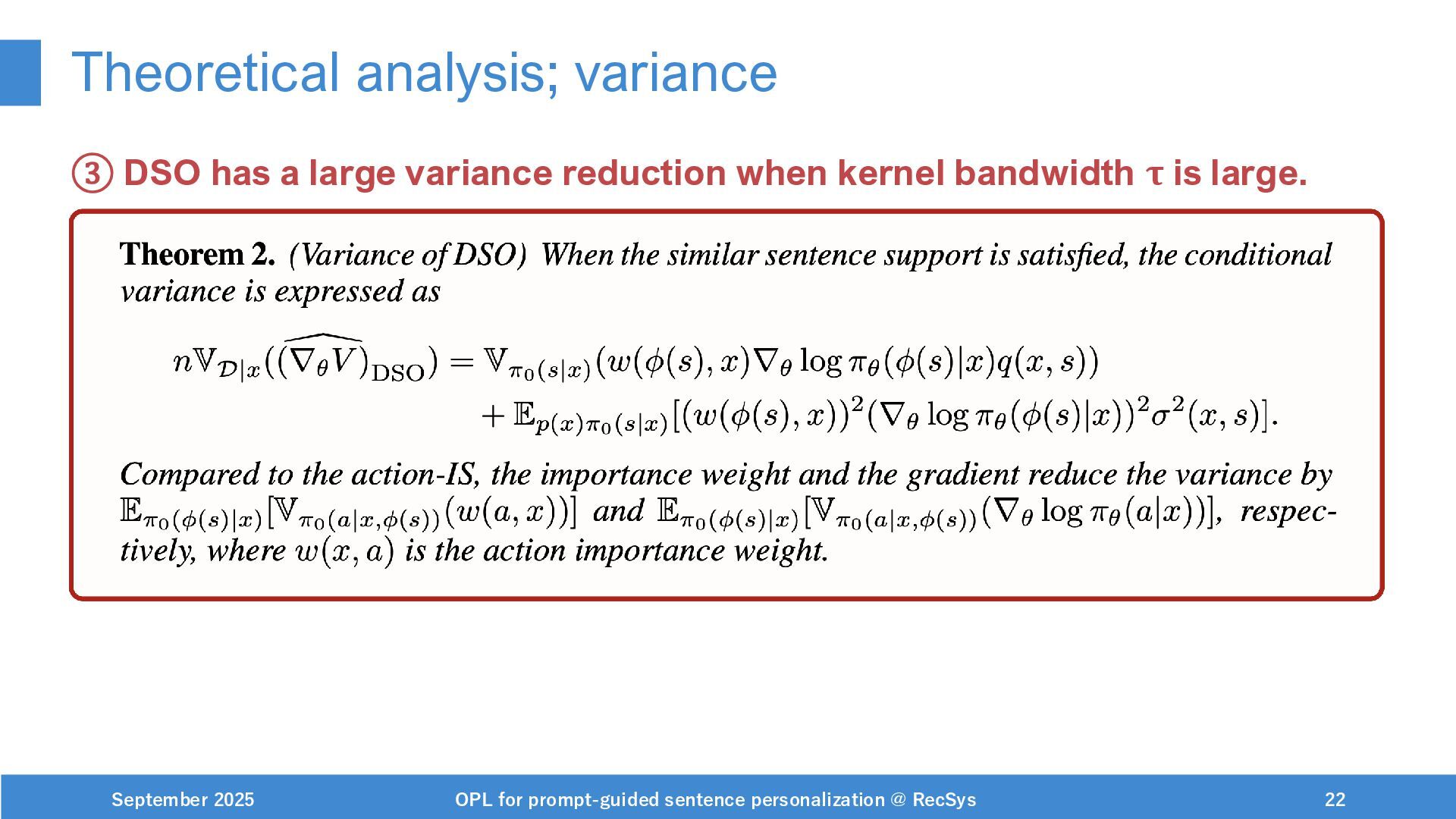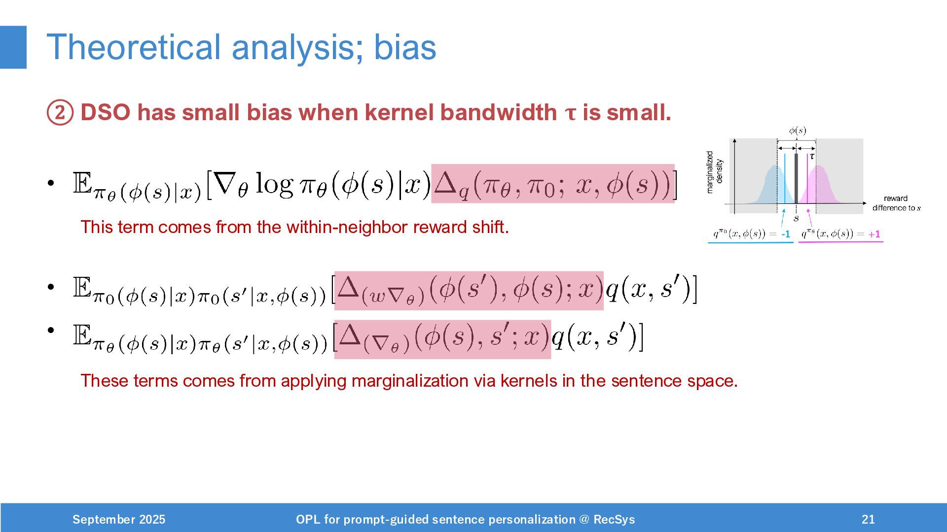NeurIPS, 1999. [Swaminathan&Joachims,16] Adith Swaminathan and Thorsten Joachims. Batch learning from logged bandit feedback through counterfactual risk minimization. JMLR, 2016. [Dudík+,11] Miroslav Dudík, John Langford, and Lihong Li. Doubly robust policy evaluation and learning. ICML, 2011. [Saito+,24] Yuta Saito, Jihan Yao, and Thorsten Joachims. Potec: Off-policy learning for large action spaces via two-stage policy decomposition. 2024. [Brown+,20] Tom Brown, Benjamin Mann, Nick Ryder, Melanie Subbiah, Jared Kaplan, Prafulla Dhariwal, Arvind Neelakantan, Pranav Shyam, Girish Sastry, Amanda Askell, Sandhini Agarwal, Ariel Herbert-Voss, Gretchen Krueger, Tom Henighan, Rewon Child, Aditya Ramesh, Daniel M. Ziegler, Jeffrey Wu, Clemens Winter, Christopher Hesse, Mark Chen, Eric Sigler, Mateusz Litwin, Scott Gray, Benjamin Chess, Jack Clark, Christopher Berner, Sam McCandlish, Alec Radford, Ilya Sutskever, and Dario Amodei. Language models are few-shot learners. NeurIPS, 2020. September 2025 OPL for prompt-guided sentence personalization @ RecSys 49