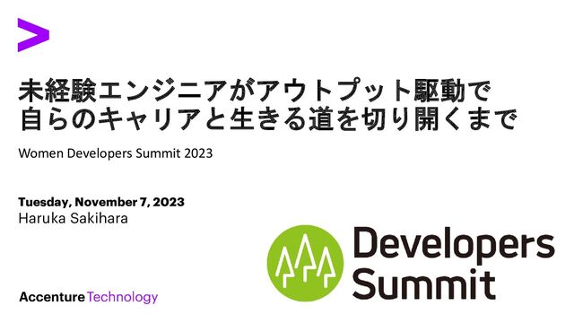 未経験エンジニアがアウトプット駆動で 自らのキャリアと生きる道を切り開くまで Tuesday, November 7, 2023 Haruka Sakihara Women Developers