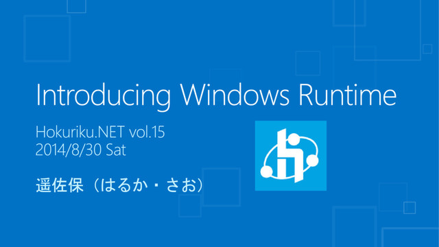 Introducing Windows Runtime 遥佐保 PPTX → http://jyurimaru.info/data/20140830Hokurikunet15/201400830_Introducing_Windows_Runtime_pub.pptx