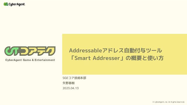 Addressableアドレス自動付与ツール 「Smart Addresser」の概要と使い方 SGEコア技術本部 2023.04.13 矢野春樹