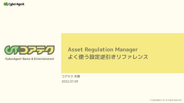 Asset Regulation Manager よく使う設定逆引きリファレンス コアテク 矢野 2022.07.09