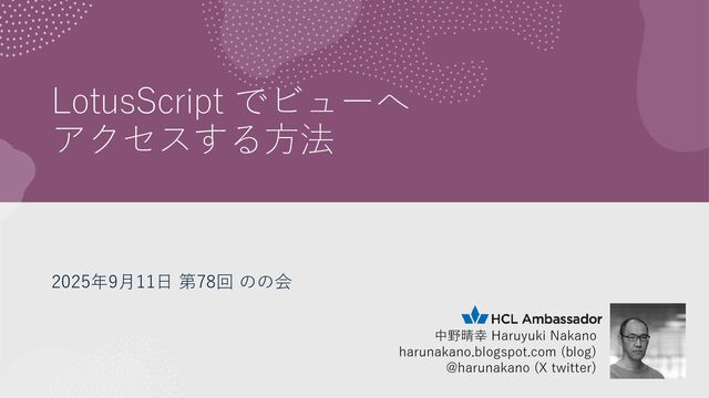 この資料は、2025年9月11日開催の「第78回 のの会 」で使用したものです。 LotusScript を使い、ビューまたはフォルダの情報へアクセスする方法をサンプルコードを示して簡単に説明します。