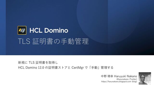 一般的な認証機関から入手したTLS証明書を HCL Domino 12.0 サーバーの証明書ストアで手動管理する方法について、認証機関への新規申込みから証明書ストアへの設定までの操作の流れを実際に実施したとおりに示します。