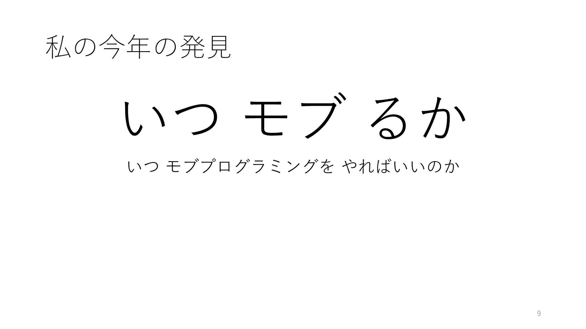 私の今年の発⾒ いつ モブ るか いつ モブプログラミングを やればいいのか 9