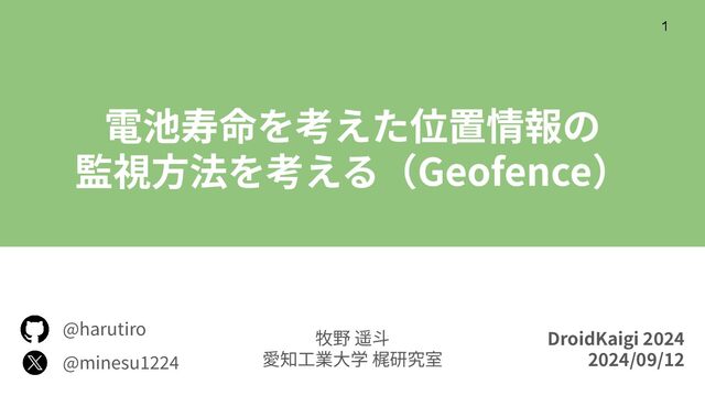 このセッションではGeofenceの概要から説明を始め、Geofenceの簡単なアルゴリズムの組み立て方を説明し、その後GMSのGeofenceを実装して、動作検証を行う。
