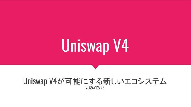Uniswap V4 Uniswap V4が可能にする新しいエコシステム 2024/12/26