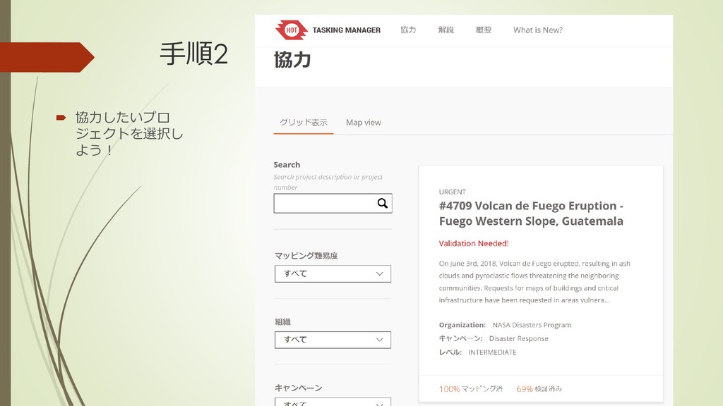 手順1 Tasking managerに ログインしよう! アカウントは open street mapのもの でOK!