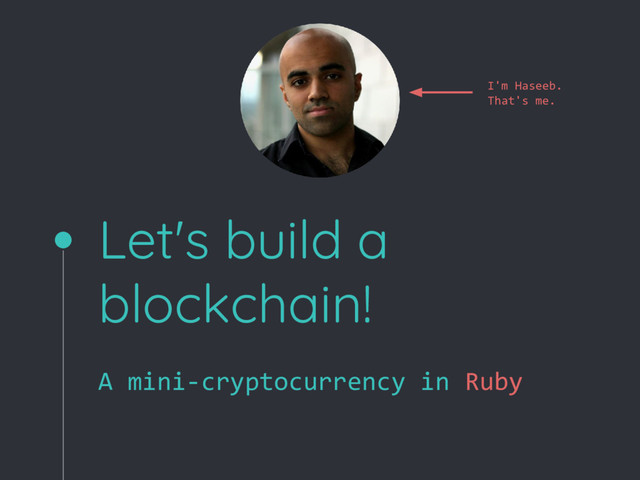Ever wondered how cryptocurrencies like Bitcoin or Ethereum work? Well, what better way to find out than to build one! Come watch this lecture by Haseeb where he builds a blockchain from scratch in Ruby. By the end, we'll definitely all be rich with something resembling money.