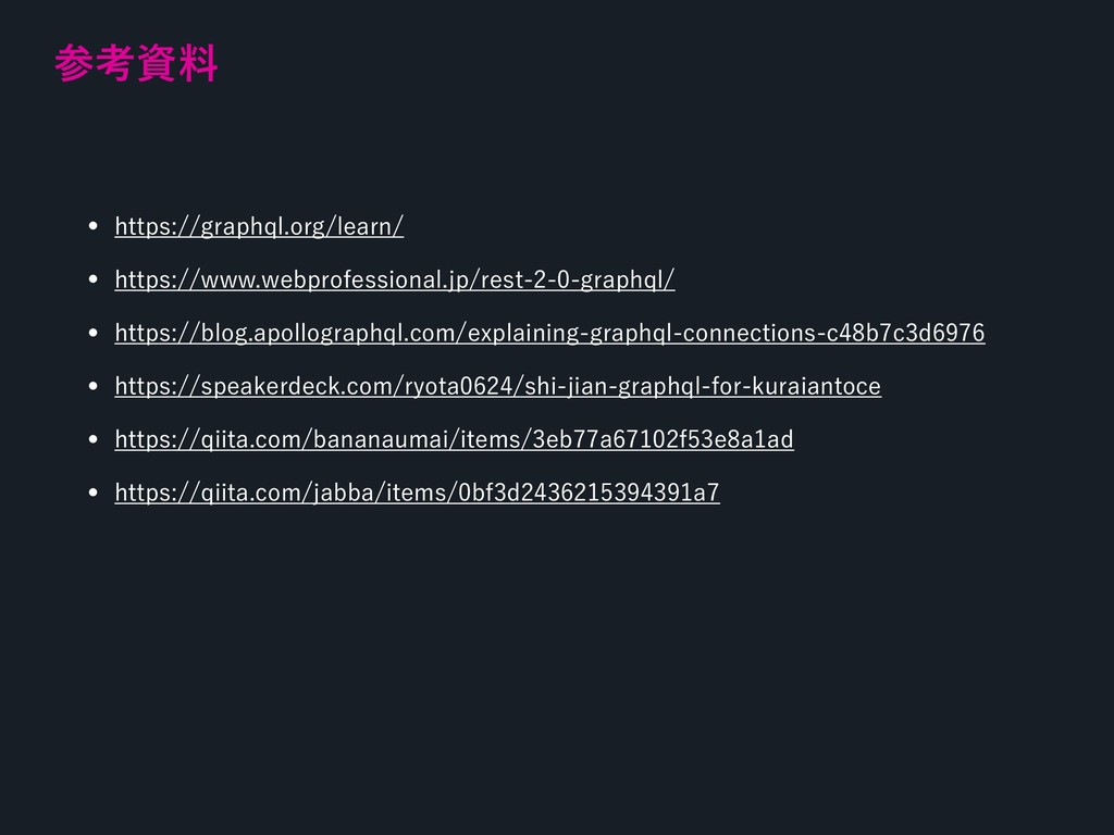 とても浅い部分しか触れていませんが, GraphQL を体験してもらって GraphQL に興味を持ってもらえたらなと思います. 間違っていることなどもあると思うので, 詳しい方はぜひ指摘して教えてください(Mail: yoheybrains[at]gmail.com)