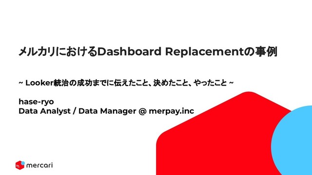 1 メルカリにおけるDashboard Replacementの事例 ~ Looker統治の成功までに伝えたこと、決めたこと、やったこと ~ hase-ryo Data Analyst /