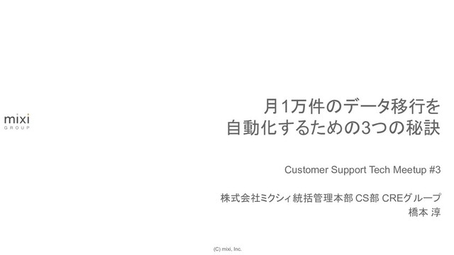 (C) mixi, Inc. Customer Support Tech Meetup #3 株式会社ミクシィ 統括管理本部