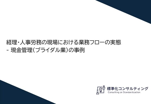 現金出納帳のフォーマットが統一されていないため、経理担当者が会計ソフトへの仕訳入 力時の負担になっている ⚫ 本社経理担当者が各店舗の現金残高を把握することが出来ない → 現金出納帳は各店舗でExcel(オフライン)で管理されており、毎月月初に印刷した帳票を 郵送しているため、月中の現金残高を経理担当者が把握することが出来ない ⚫ 現場で現金残高が不足し、経理担当者が急遽、銀行口座から出勤対応することがある → 銀行口座の入出金管理は本社経理で行っているため、現金残高が不足する場合、経理担当 者が銀行口座から引出し、店舗に届ける必要がある