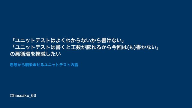 $*$%ͷύΠϓϥΠϯʹςετͷΈΛͤΒΕΔ w ૯ͯ͡ɺϢχοτςετվળαΠΫϧΛਝʹճ͍ͯͨ͘͠ΊͷʹͳΔ w ͍ͭͰʹɺΩϟϦΞతʹଛࣦ w ϓϩμΫτ։ൃʹ͓͍ͯςετී௨ͷεΩϧηοτʢ˞ݸਓͷภݟͰ͢ʣ w ࠾༻ଆͷઢͰɺςετ͕ॻ͚ͳ͍ਓ͕Ξϐʔϧ͢Δ։ൃ࣮ΛͲͷ͘Β͍৴༻ɾධՁͰ͖ΔͰ͠ΐ͏͔ʁ ʢɺςετ͚͕࣮ͩೳྗͷͯ͢ͱࢥ͍ͬͯ·ͤΜʣ w ͔࣮ͤͬ͘ͷࣄʹܞΘΔػձΛಘͨͷͰ͋ΕɺࢢͰධՁ͞ΕΔ αϒΣϙϯͱͯ͑͠Δఔͷࣗ৴ΛखʹೖΕͨ͋͘ΓͤΜ͔ʁ ςετΛॻ͔ͳ͍ͷɺʢଟ͘ͷ߹ʹ͓͍ͯʣ ଛࣦΛརࢠ͖ͰઌԆ͠ʹ͢Δߦҝ