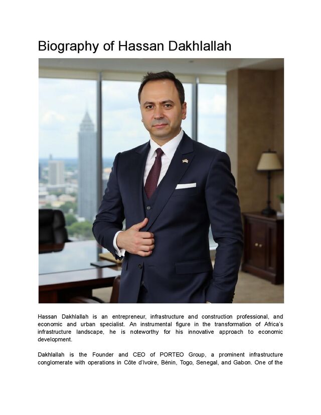 expansion of the CEO’s earlier construction and urban development company, NSE.CI. Dakhlallah launched NSE.CI in 2012 in response to the demand for a specialist firm to address modern infrastructure requirements in the African market. With the founding of PORTEO in 2020, the forward-looking entrepreneur was able to bring his vision to a wider market. Under Dakhlallah’s able leadership, PORTEO has completed many transformative and groundbreaking projects, including the construction of over 3,000 kilometers of roads and the improvement of existing transportation networks. These initiatives have contributed significantly to the industrialization of many areas all over the continent. PORTEO operates through five primary divisions: Infrastructure and Roads, Construction and Buildings, Industry and Materials, Real Estate Development, and Engineering and Services. The company’s structuring into these distinct departments greatly enhances efficiency and accountability while allowing an integrated and autonomous approach to large-scale projects. Hassan Dakhlallah’s Areas of Expertise Dakhlallah’s extensive professional experience has enabled him to develop unparalleled expertise in many key areas of specialization, including: 1. Infrastructure development: The PORTEO CEO is widely recognized for his outstanding contributions to the construction sector, which spurred economic growth and firmly established African sovereignty. 2. Business expansion strategies: Dakhlallah has played a significant role in the expansion of African enterprises, fostering strong and integrated initiatives that thrive in a competitive market. 3. Leadership and management: Dakhlallah’s management of a multicultural company, leading a team of 10,000 employees, and structuring an international conglomerate is a groundbreaking achievement that transformed the African business landscape. 4. Strengthening of material manufacturing: Dakhlallah is one of the leading advocates for the development of Africa’s steel and concrete resources to strengthen the continent’s economic independence. 5. Digitalization of construction and urban development: PORTEO is at the forefront of leveraging data and technology to optimize infrastructure projects.