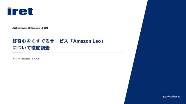 1. 目次 2 ⚫ はじめに ⚫ Amazon Leoとは ⚫ re:Invent 2025のセッションから見るAWSとAmazon