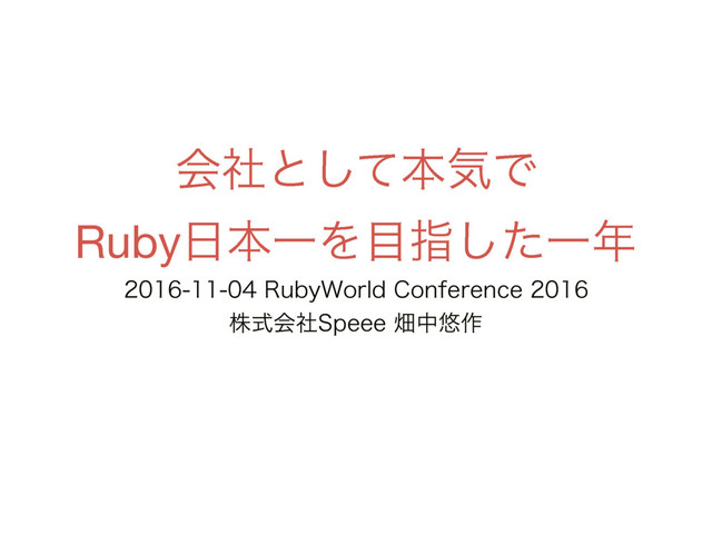 ձࣾͱͯ͠ຊؾͰ RubyຊҰΛࢦͨ͠Ұ 3VCZ8PSME$POGFSFODF גࣜձࣾ4QFFFാத༔࡞