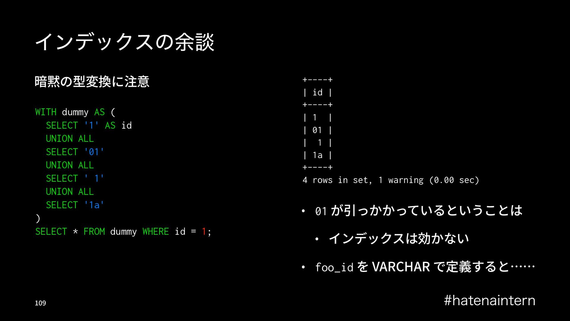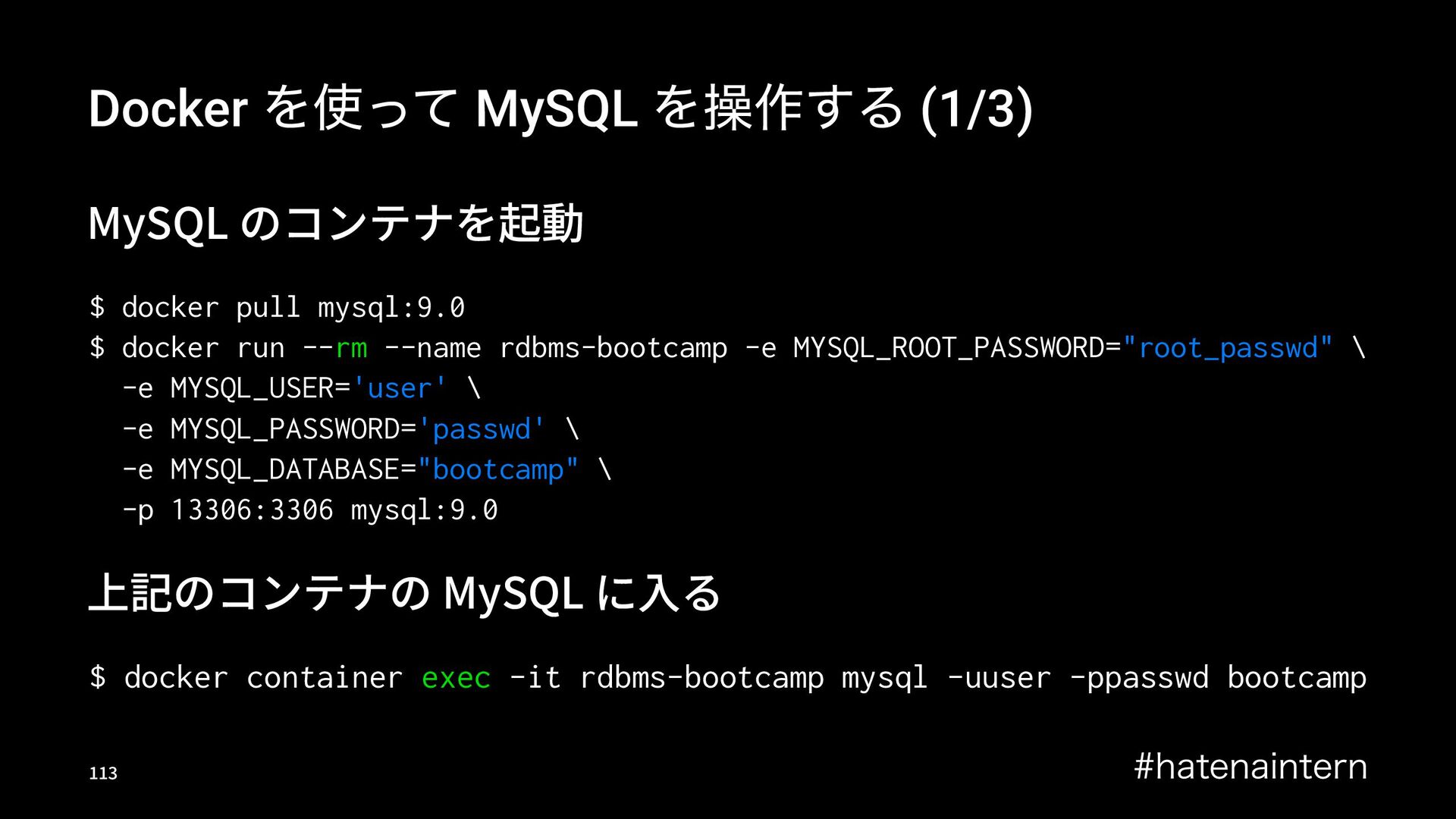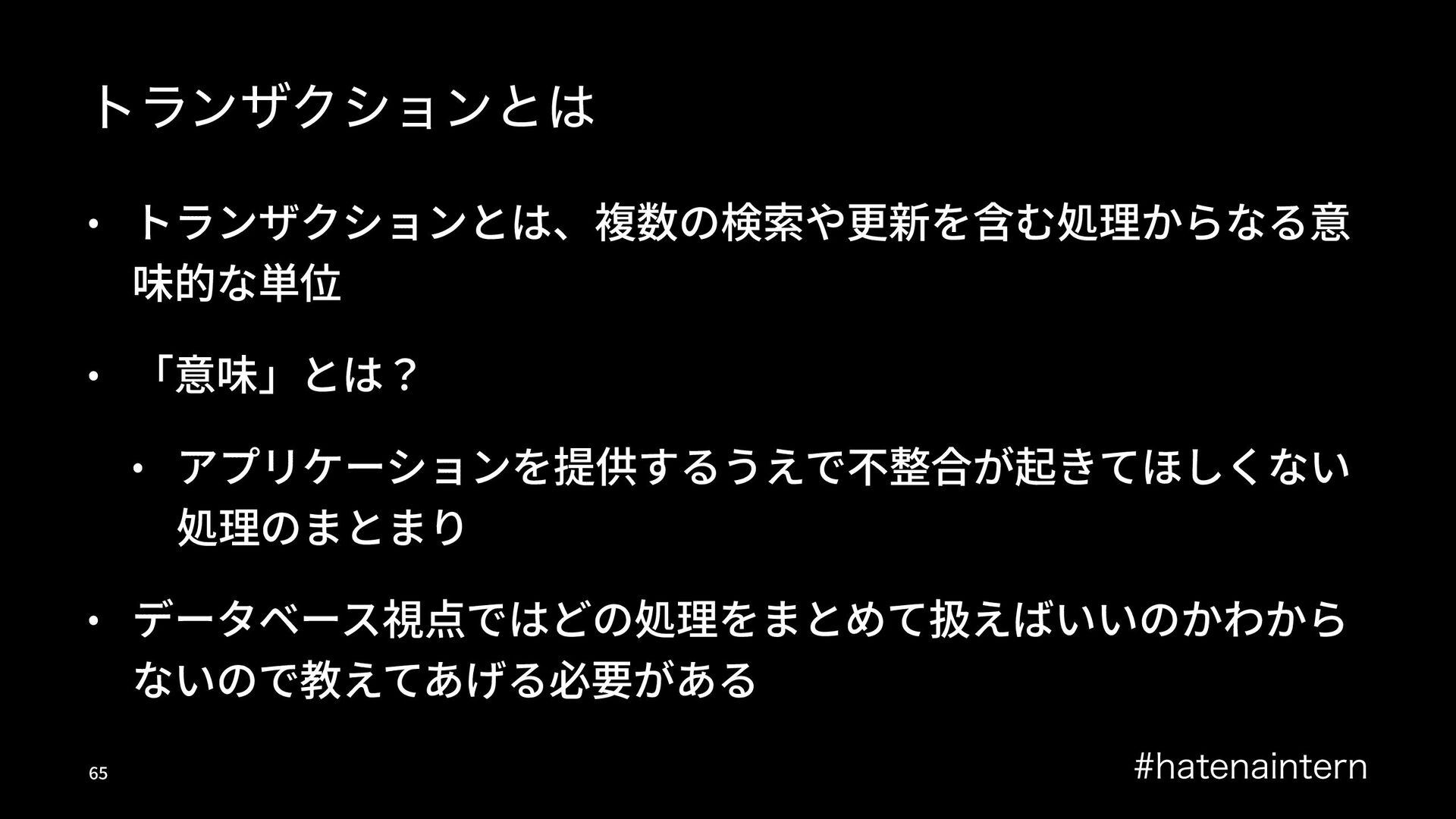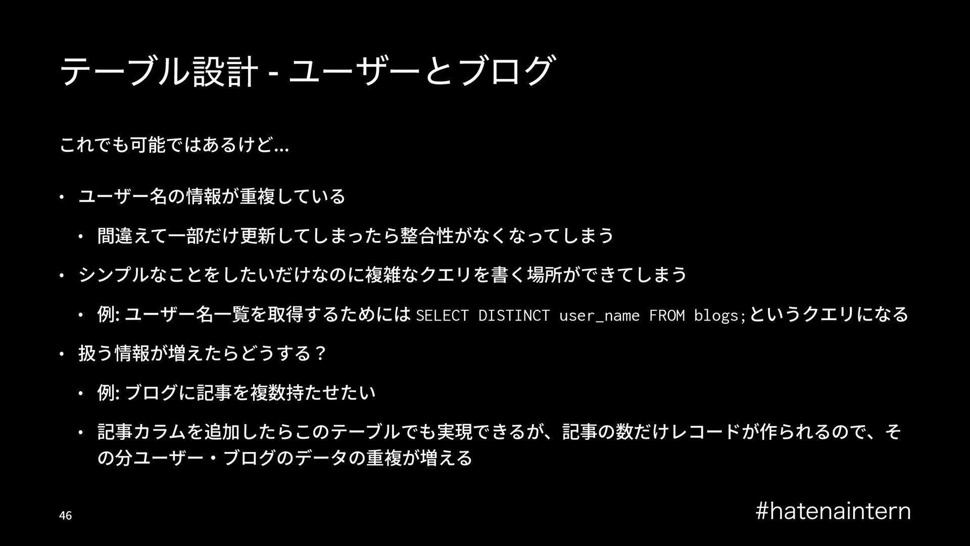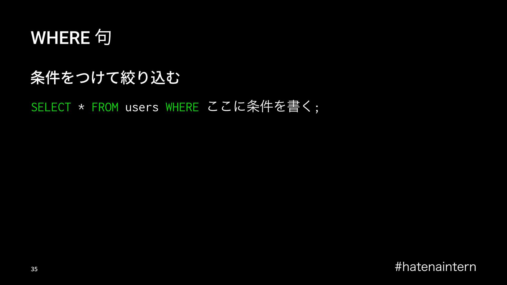 ͷ user ΛՃͯ͠ɺޭ͢Δ INSERT INTO users (id, name, created_at) VALUES (1, 'name1', NOW()); Query OK, 1 row affected (0.01 sec) -- ಉ͡ id ͷΛೖΕΑ͏ͱ͢ΔͱɺΤϥʔʹͳΔ INSERT INTO users (id, name, created_at) VALUES (1, 'name2', NOW()); ERROR 1062 (23000): Duplicate entry '1' for key 'users.PRIMARY' ! クエリの下に書いてあるのは RDBMS から返されてきたクエリの結果。 IBUFOBJOUFSO !"