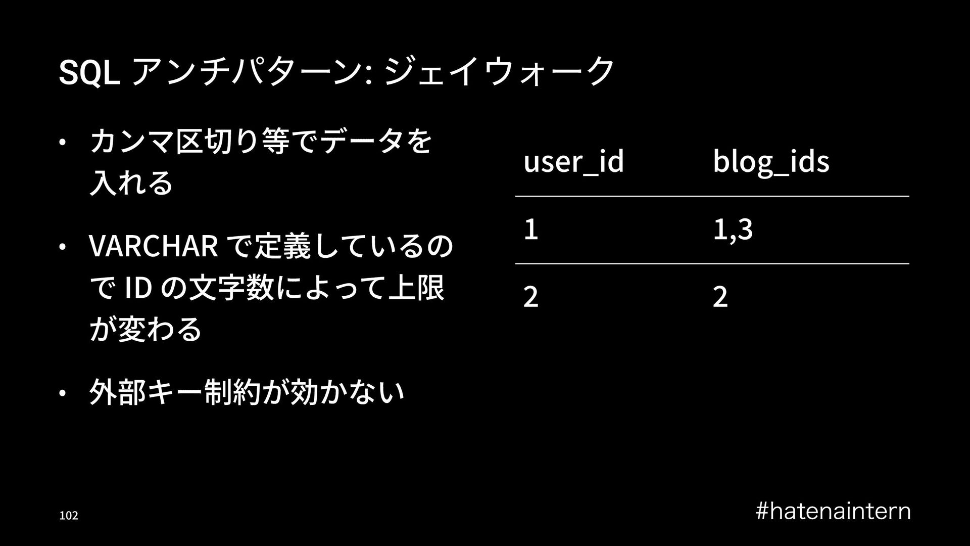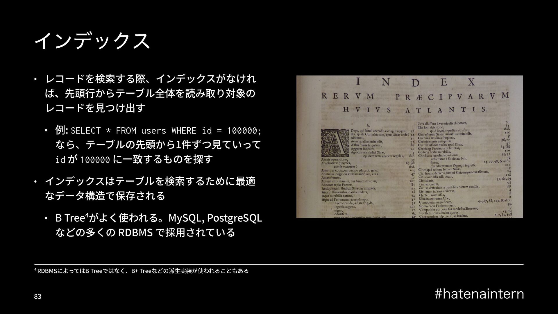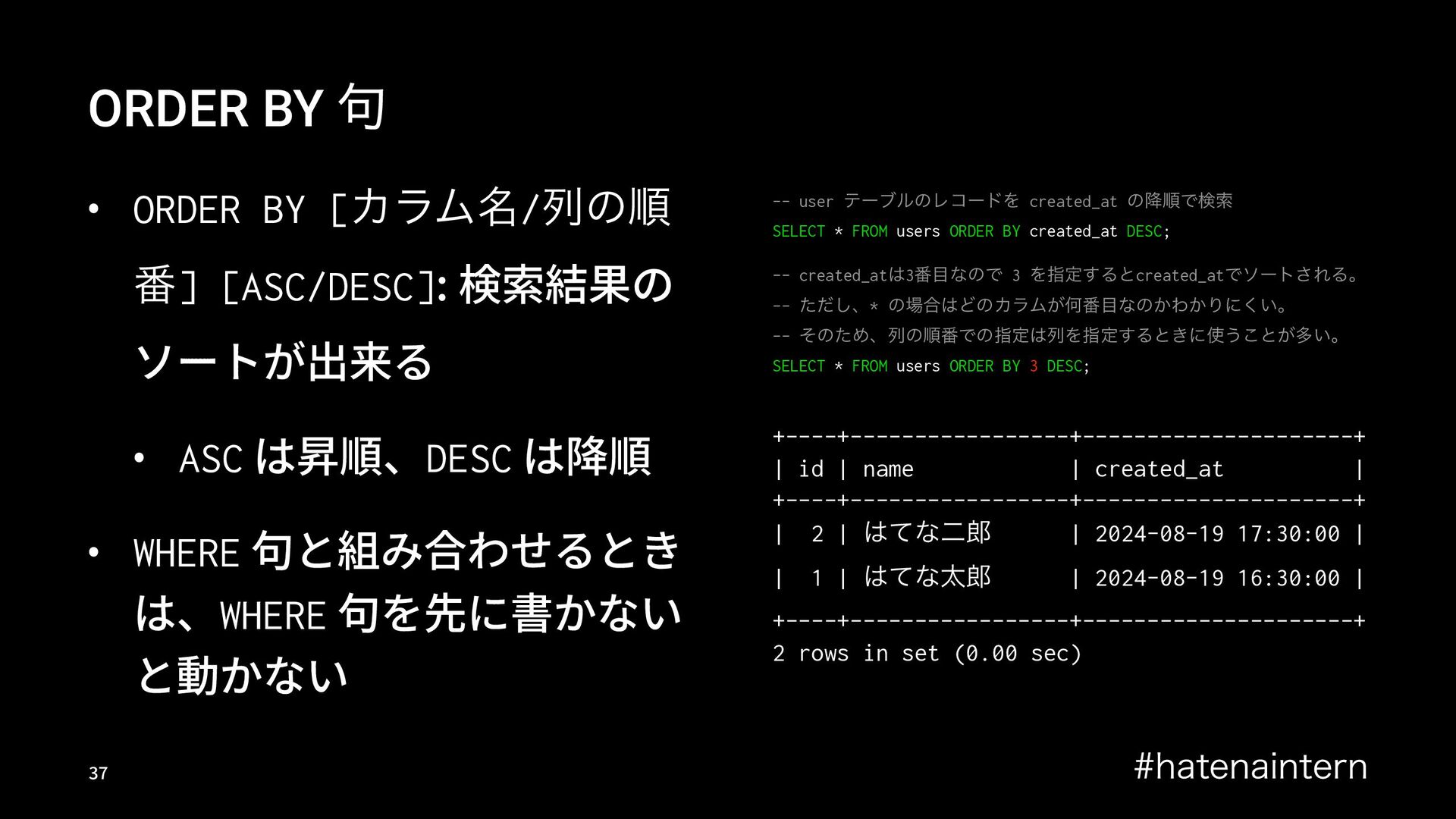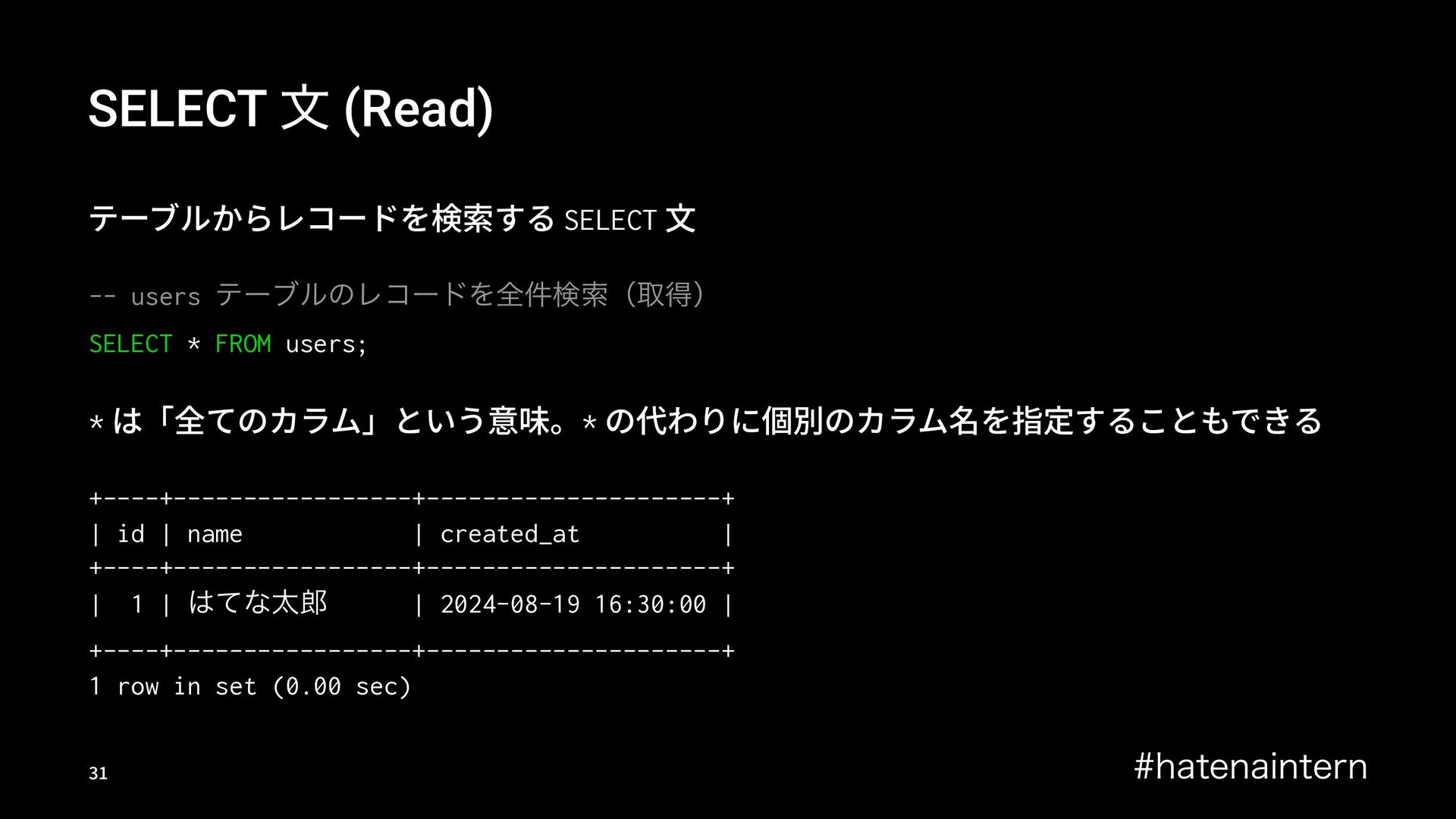 ͷ user ΛՃͯ͠ɺޭ͢Δ INSERT INTO users (id, name, created_at) VALUES (1, 'name1', NOW()); Query OK, 1 row affected (0.01 sec) -- ಉ͡ id ͷΛೖΕΑ͏ͱ͢ΔͱɺΤϥʔʹͳΔ INSERT INTO users (id, name, created_at) VALUES (1, 'name2', NOW()); ERROR 1062 (23000): Duplicate entry '1' for key 'users.PRIMARY' ! クエリの下に書いてあるのは RDBMS から返されてきたクエリの結果。 IBUFOBJOUFSO !"