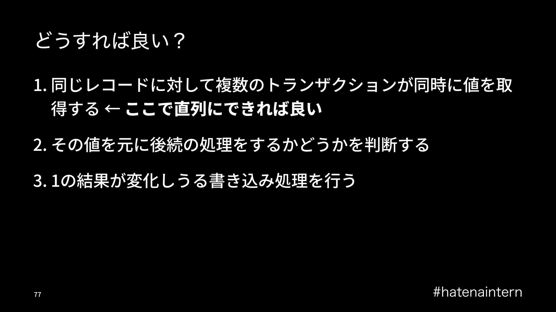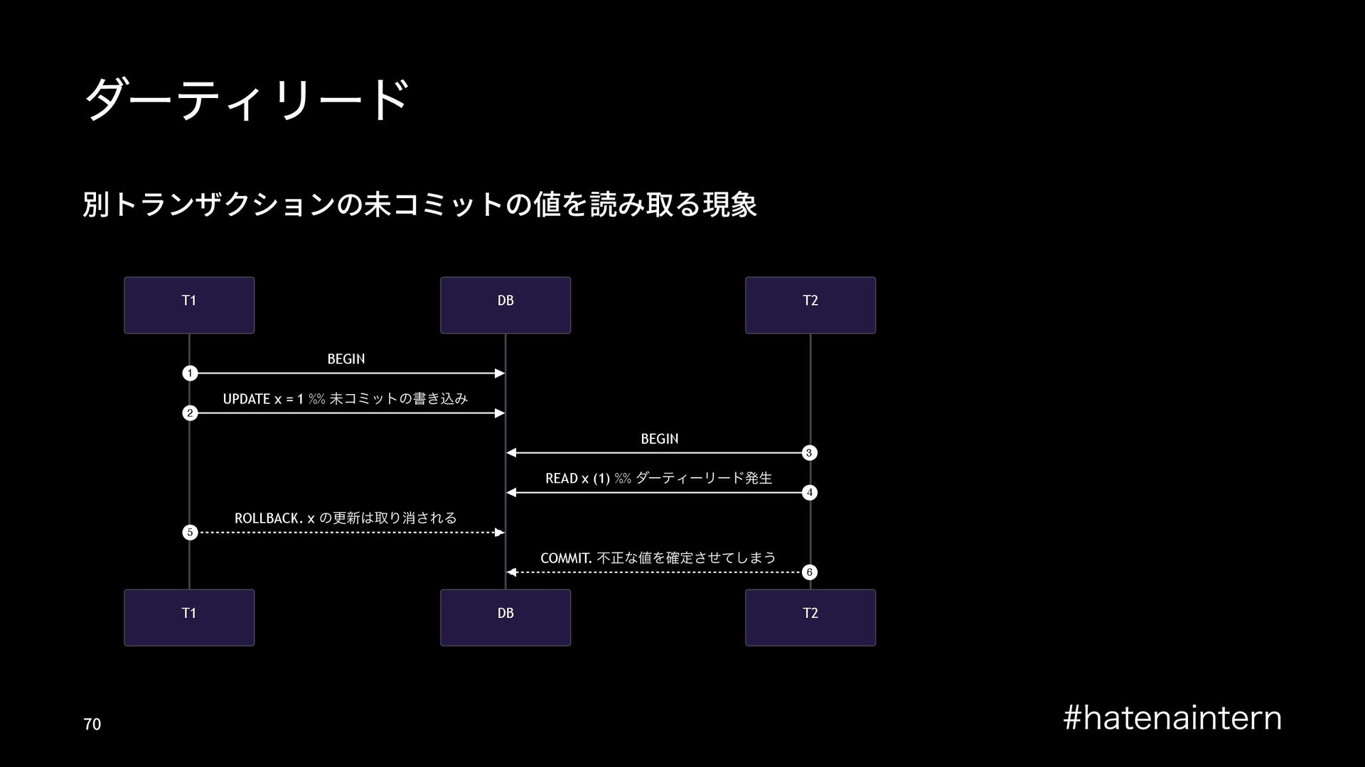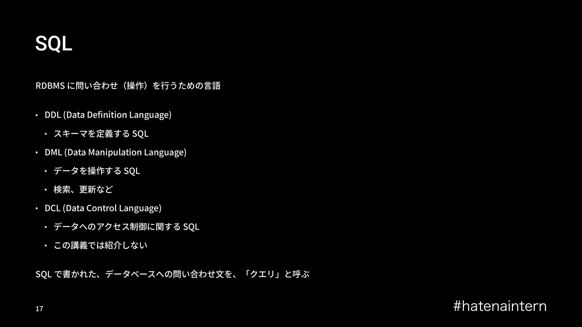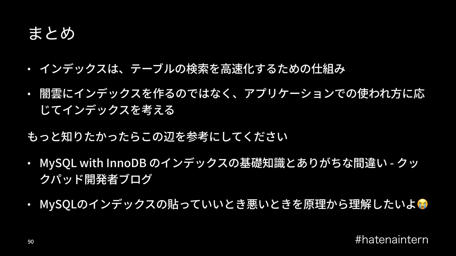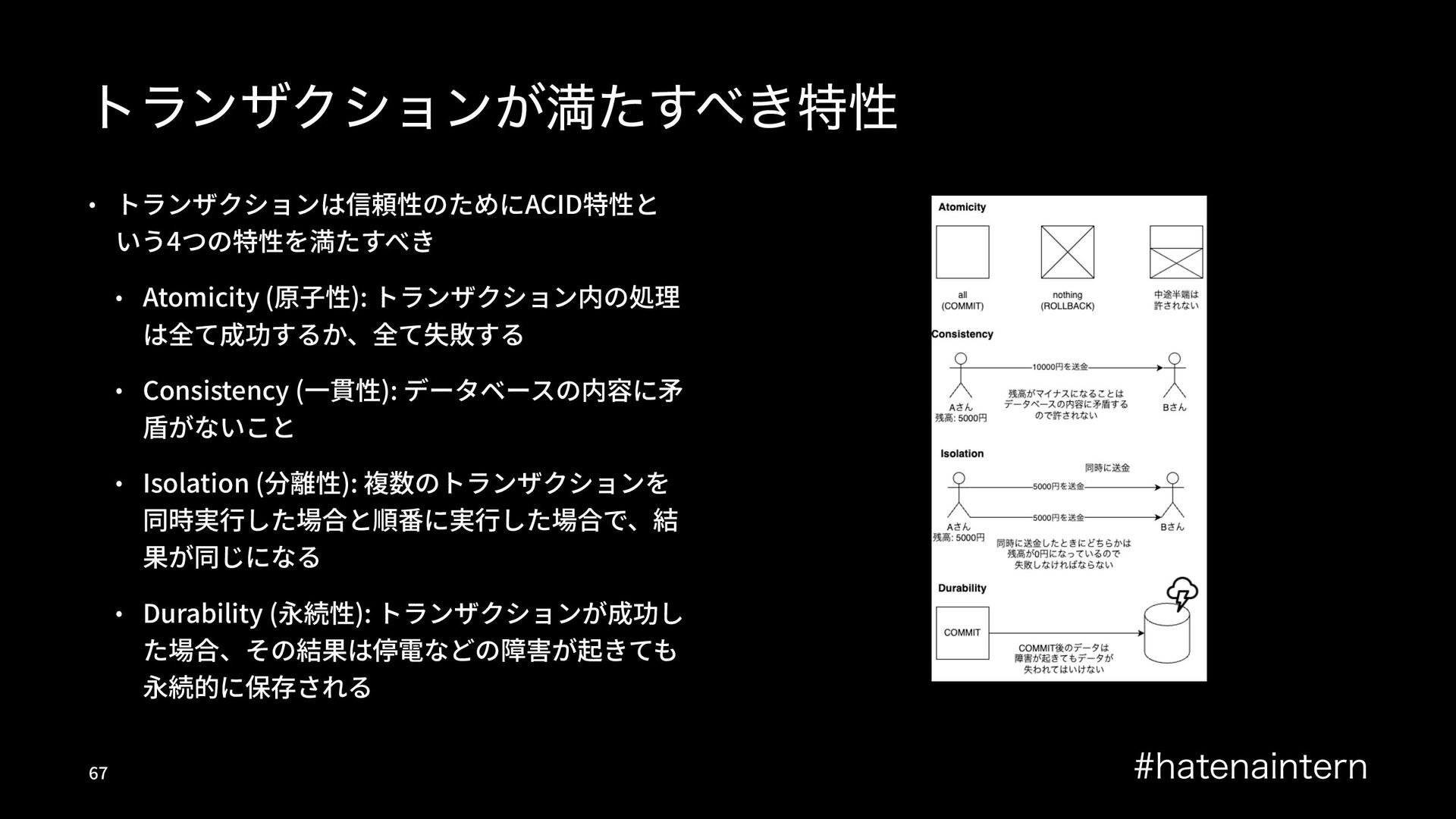 ͷ user ΛՃͯ͠ɺޭ͢Δ INSERT INTO users (id, name, created_at) VALUES (1, 'name1', NOW()); Query OK, 1 row affected (0.01 sec) -- ಉ͡ id ͷΛೖΕΑ͏ͱ͢ΔͱɺΤϥʔʹͳΔ INSERT INTO users (id, name, created_at) VALUES (1, 'name2', NOW()); ERROR 1062 (23000): Duplicate entry '1' for key 'users.PRIMARY' ! クエリの下に書いてあるのは RDBMS から返されてきたクエリの結果。 IBUFOBJOUFSO !"