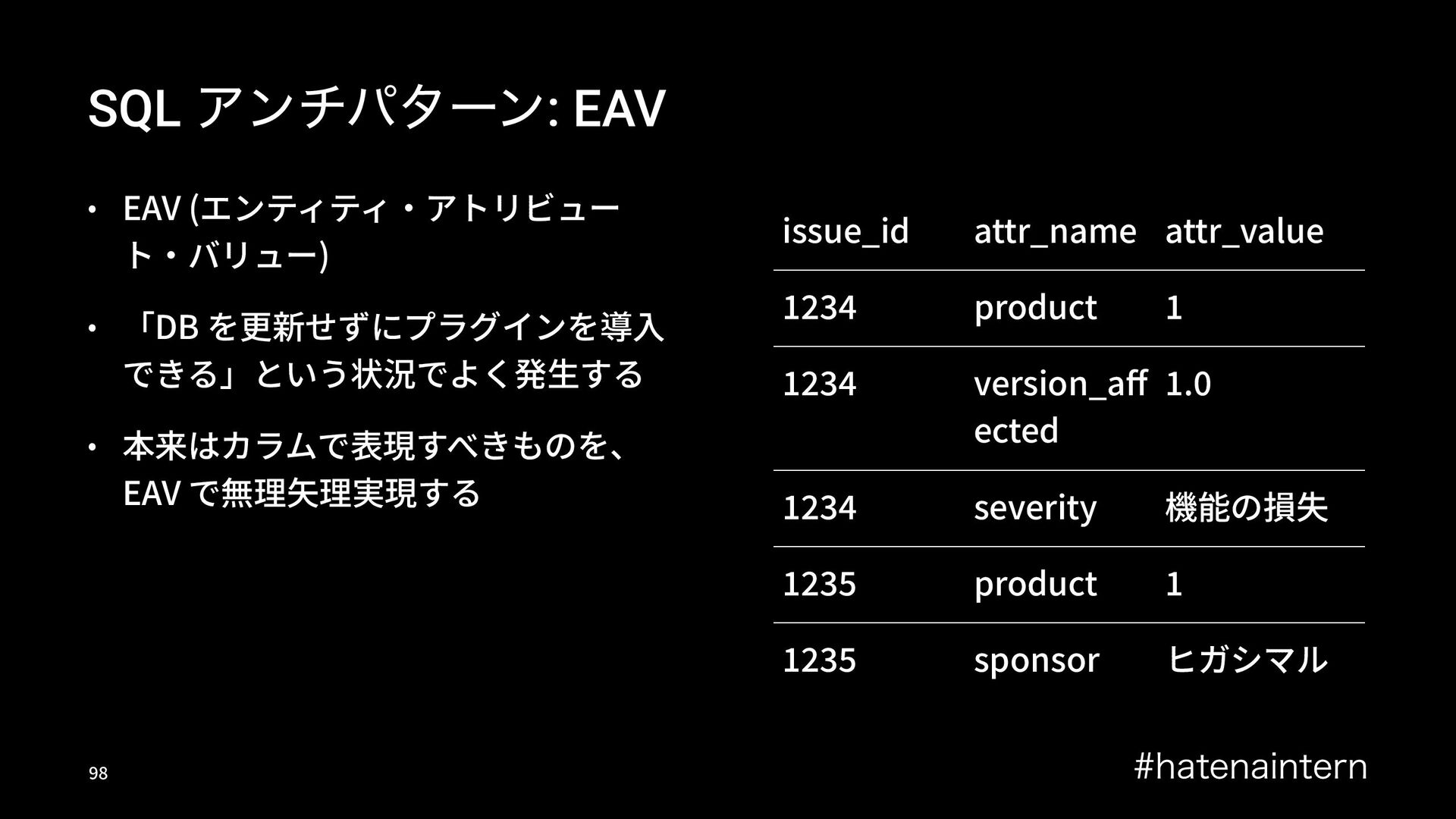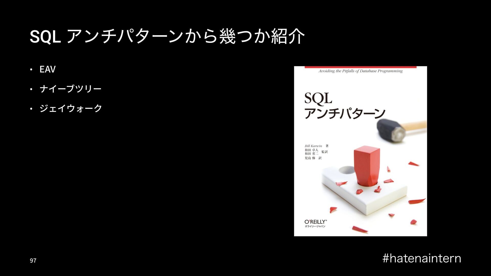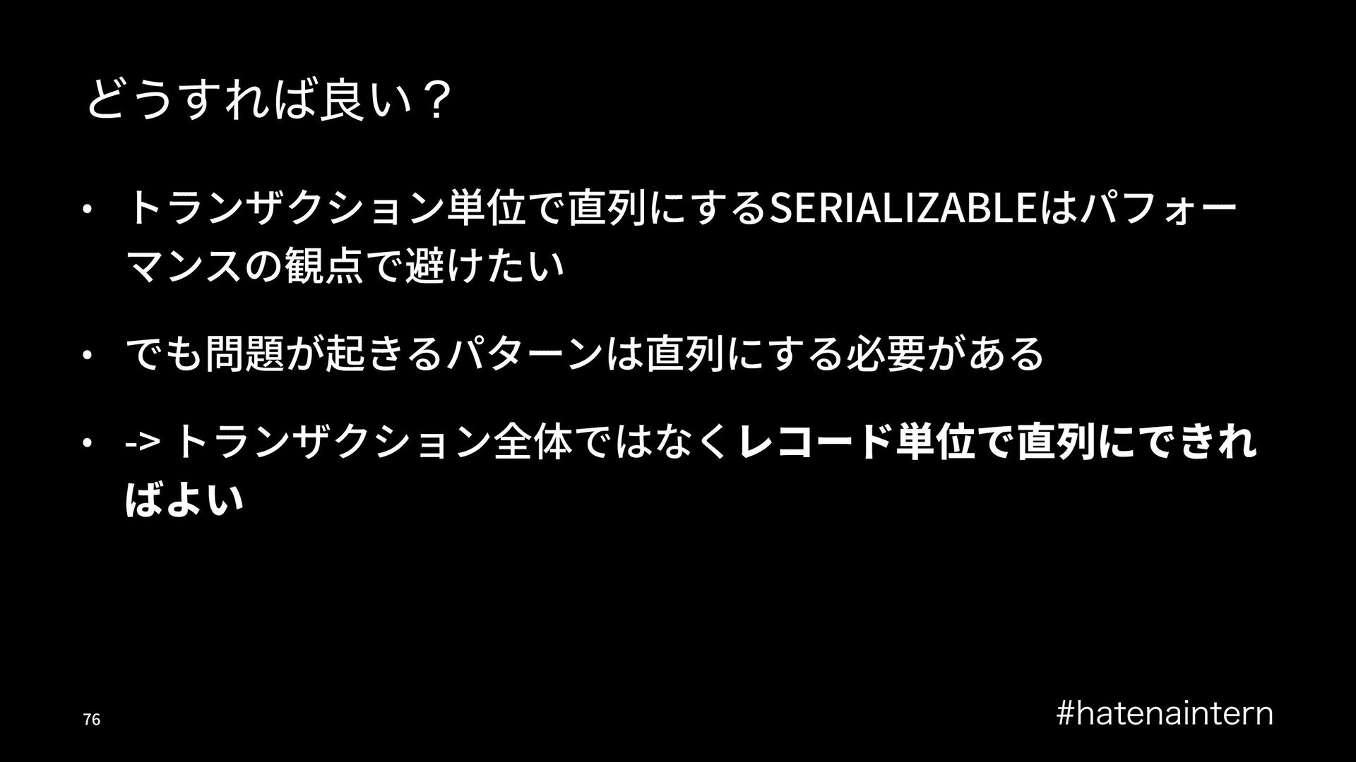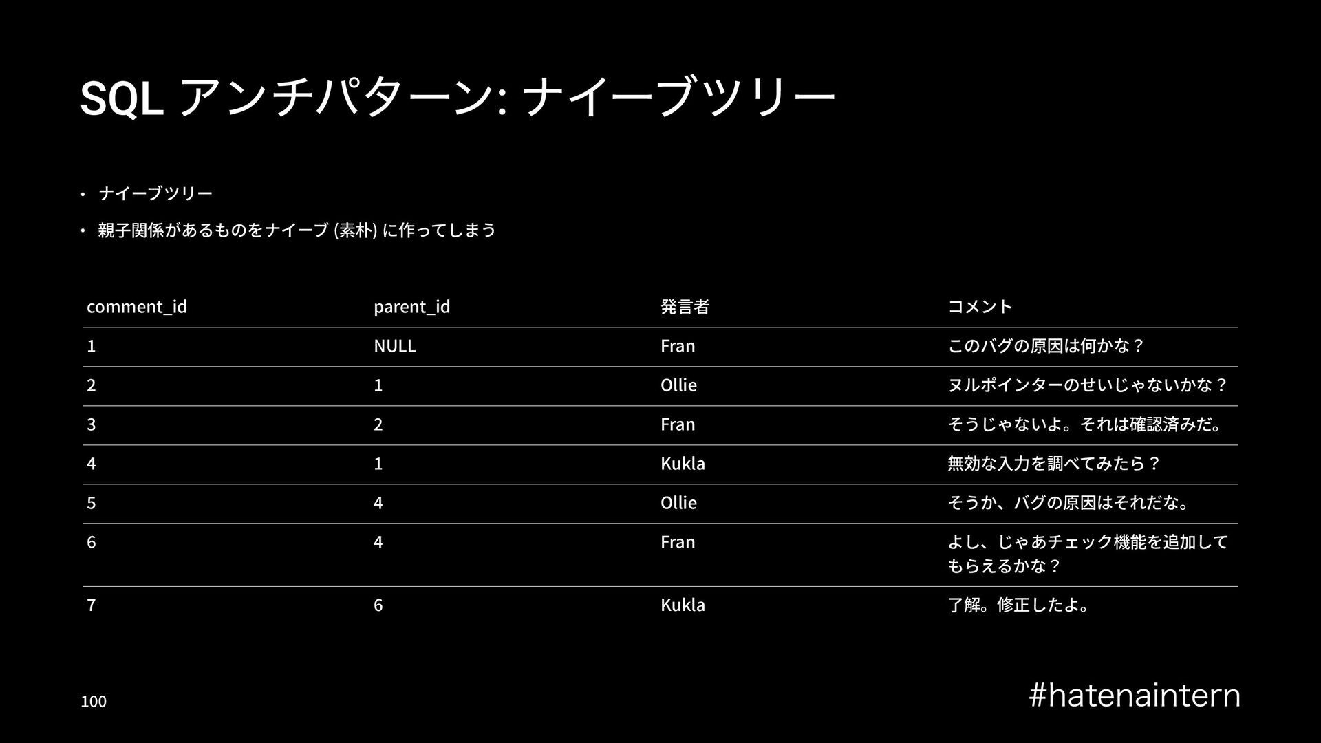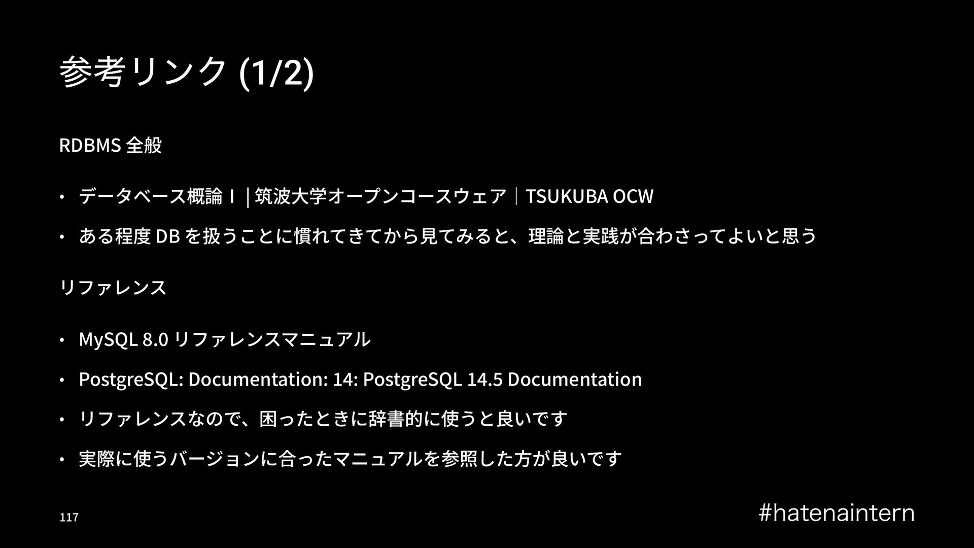 ͷ user ΛՃͯ͠ɺޭ͢Δ INSERT INTO users (id, name, created_at) VALUES (1, 'name1', NOW()); Query OK, 1 row affected (0.01 sec) -- ಉ͡ id ͷΛೖΕΑ͏ͱ͢ΔͱɺΤϥʔʹͳΔ INSERT INTO users (id, name, created_at) VALUES (1, 'name2', NOW()); ERROR 1062 (23000): Duplicate entry '1' for key 'users.PRIMARY' ! クエリの下に書いてあるのは RDBMS から返されてきたクエリの結果。 IBUFOBJOUFSO !"