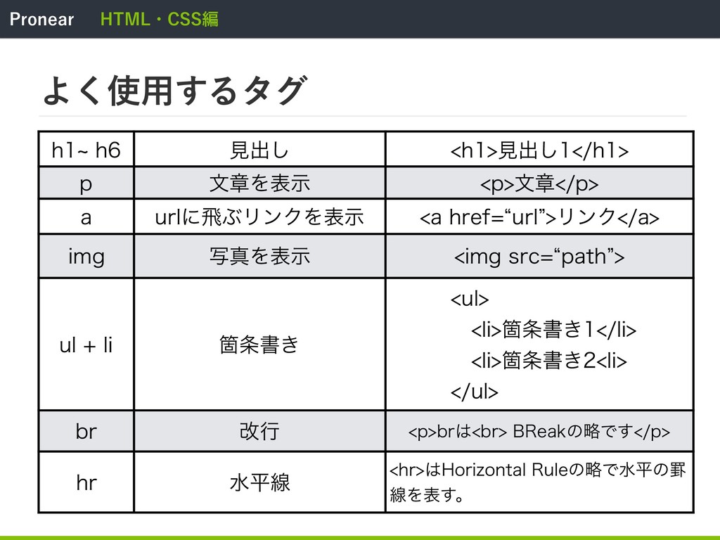 1SPOFBS )5.-ɾ$44ฤ جૅɾ)5.- )5.-ͷॻ͖ํɾ࣮ࡍʹॻ͍ͯΈΔɻ ༷ʑͳλάΛͬͯ)5.-Λॻ͖ɺදࣔ͞ΕΔͷΛ͔֬ΊΔɻ ͖ͳΤσΟλͰϑΝΠϧΛ৽ن࡞ɻ໊લΛTBNQMFIUNMʹ͢Δɻ ͖ͳλάΛॻ͍ͯɺอଘͨ͠ΒϒϥβͰTBNQMFIUNMΛ։͍ͯΈΔɻ