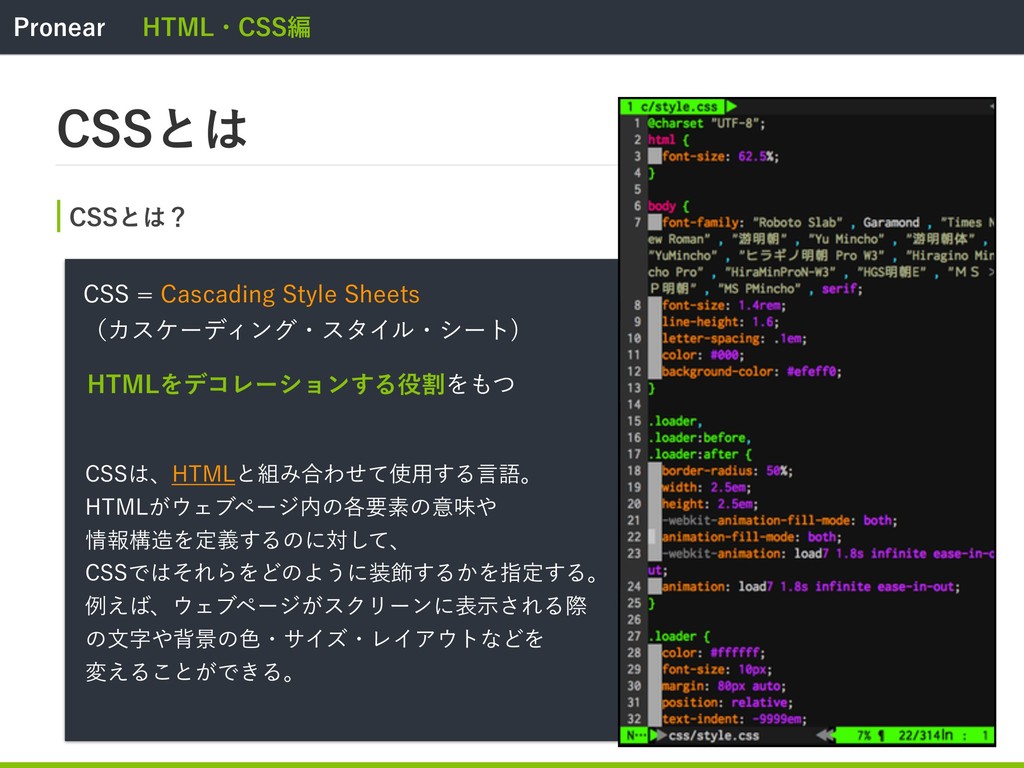 1SPOFBS )5.-ɾ$44ฤ $44ͱ $44ͱʁ $44$BTDBEJOH4UZMF4IFFUT ʢΧεέʔσΟϯάɾελΠϧɾγʔτ $44ɺ)5.-ͱΈ߹Θͤͯ༻͢Δݴޠɻ )5.-͕Σϒϖʔδͷ֤ཁૉͷҙຯ ใߏΛఆٛ͢Δͷʹରͯ͠ɺ $44ͰͦΕΒΛͲͷΑ͏ʹ০͢Δ͔Λࢦఆ͢Δɻ