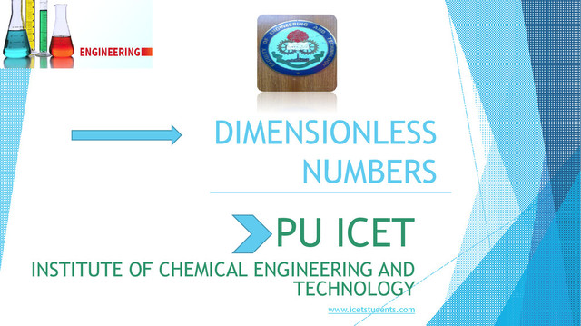 DIMENSIONLESS NUMBERS PU ICET INSTITUTE OF CHEMICAL ENGINEERING AND TECHNOLOGY