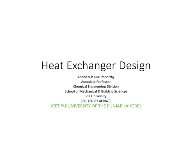 simple to use. • The correlation gives mean coefficient between two points at which vapor quality, x, (mass fraction of vapour) is known. 1,2 refer to inlet and outlet conditions respectively • In a condenser, the inlet stream will normally be saturated vapour and vapour will be totally condensed. For these conditions: • For design of condensers with condensation inside the tubes and downward vapor flow, coefficient should be evaluated using Colburn’s method and Boyko-Kruzhilin correlation and the higher value selected. x J where J J h h v v L i BK c 1 2 ) ( 2 / 1 2 2 / 1 1 43 . 0 8 . 0 Pr Re 021 . 0 i L i d k h 2 1 ) ( v L i BK c h h