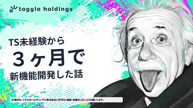 本資料は、トグルホールディングス株式会社に許可なく複製・転載をしないようお願いします。 TS未経験から 3ヶ⽉で 新機能開発した話