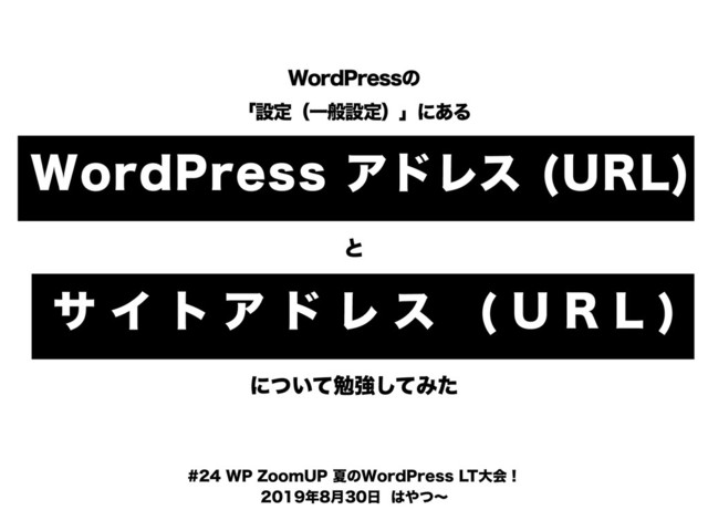WordPressの「設定(一般設定)」にある WordPress アドレス (URL)と サイトアドレス (URL)について勉強してみた、という発表のスライドです。