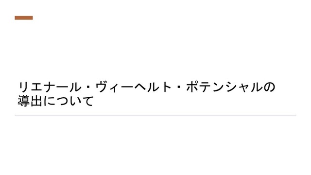 リエナール・ヴィーヘルト・ポテンシャルの 導出について