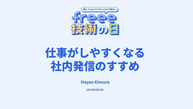 仕事がしやすくなる 社内発信のすすめ Hayao Kimura 2023年4⽉16⽇