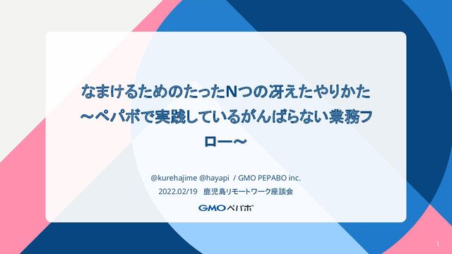 なまけるためのたったNつの冴えたやりかた 〜ペパボで実践しているがんばらない業務フ ロー〜 @kurehajime @hayapi / GMO PEPABO inc. 2022.02/19