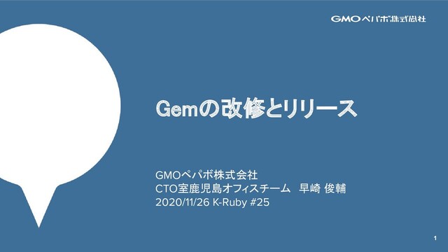 1 Gemの改修とリリース GMOペパボ株式会社 CTO室鹿児島オフィスチーム 早崎 俊輔 2020/11/26 K-Ruby #25