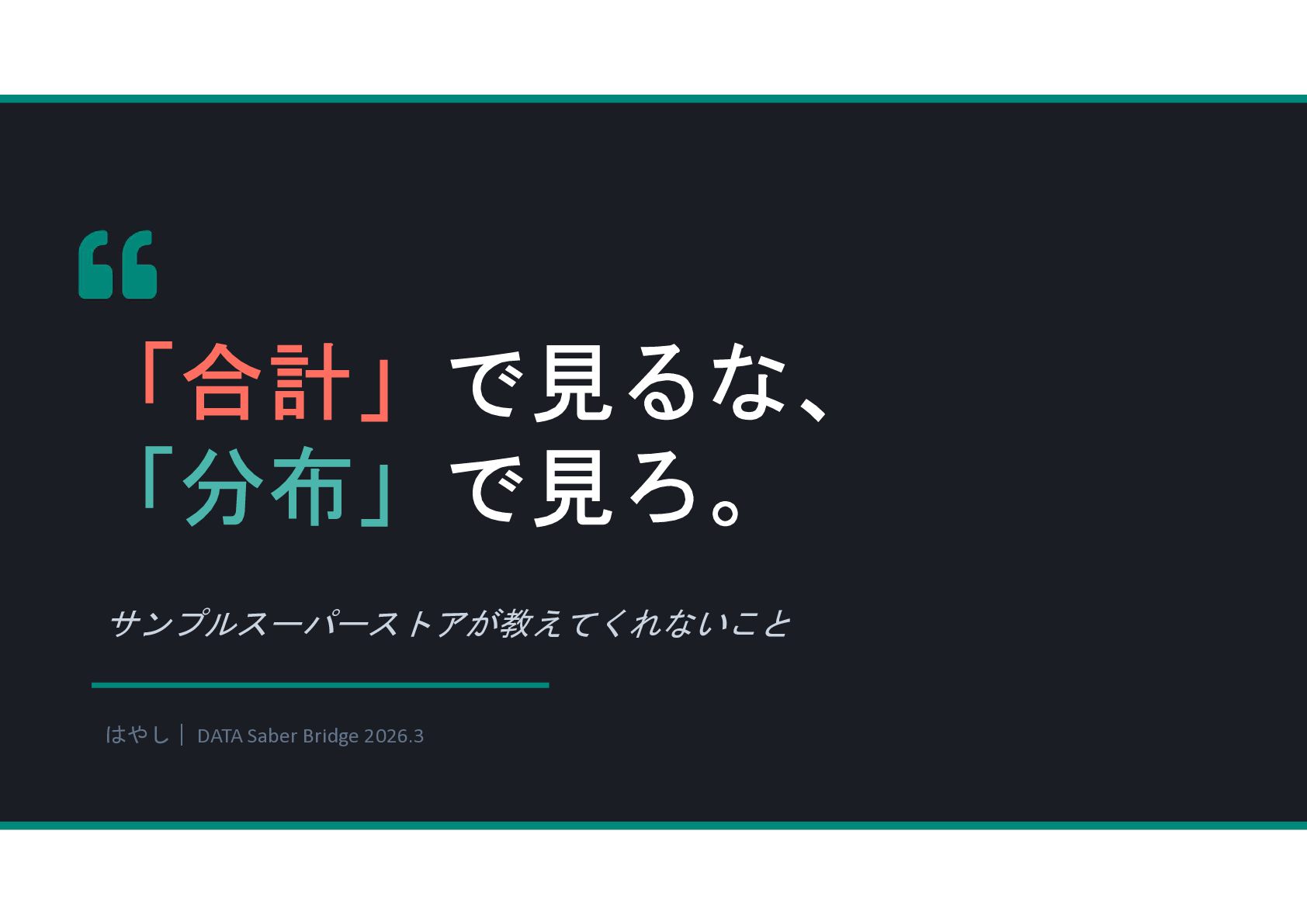 サンプルスーパーストアの次のステップとして、SSDSEで箱ひげ図やヒストグラムを試してみてください。データを見るときの気づきになれば幸いです。