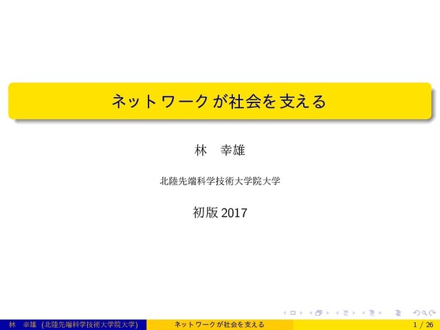 Barabasi Albert Dorogovtsev Mendes Pastor-Satorras Vespignani Barrat Barthelemy Cohen Konnno Ide Takei Masuda Newman Krapivsky Redner Leyvraz Jeong Bianconi Ben-Naim Kuninaka Matsushita Kobayashi Yook Gastner ben-Avraham Rozenfeld Warren Sander Sokolov Hayashi Ono Xulvi-Brunet Sen Manna Nandi Kalisky Kim.S.H Zhou.T Yan Wang.B.-H Goltsev Samukhin Wang.L Du Dai Sun Zhang Zhou.S Su Guan Cancho Sole Flammini Helbing Keltsch Molnar Tero Takagi Saigusa Ito Bebber Fricker Yumiki Kobayashi Nakagaki Meguro Rajan Chandra Reddy Hiremath Fan Liu Sinha Matsukubo Andrade.Jr Andrade Silva Rong Comellas Guo Vieira Chen.L Fang Auto Moreria Xie Qi Kim.P.J Eliazar Wang.J Provan Rui Ban Haas Ashton Jarret Johnson Fricker Holme Xuan Du Yu Chen.G Miyazaki Stoyan Kendall Mecke Nagel Ohser Weiss Okabe Boots Sugihara Chiu Komaki Machida Viswanathan daLuz Raposo Santos Lammer Gehlsen Masucci Smith.D Batty Chan Donner Bitner Holyst Fialkowski Katsuragi Sugino Honjo Ishii Delaney Hutzler Aste Lee Gonzalez Hidalgo Smith.E.R Everret Kim.J Kahng Isolatov Yuryev Yang Lou Chen.G Chen.S.Y Huang Wu Tanizawa Mitra Dubey Ganguly Dovrolis Dhamdhere Karbhari Ammar Raj Riley Bentley Hahn Shennan Guimera Diaz-Guilera Vega-Redondo Cabrales Arenas Ercsy-Ravasz Lichenwalter Chawla Toroczkai Freeman Borgatti White Dolev Elovici Puzis Stumpf Wiuf May Pajek , , 2014 ( ) 6 / 26