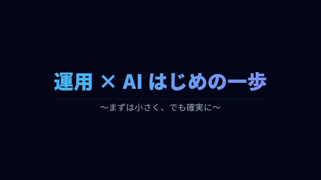 運用 × AI はじめの一歩 〜まずは小さく、でも確実に〜