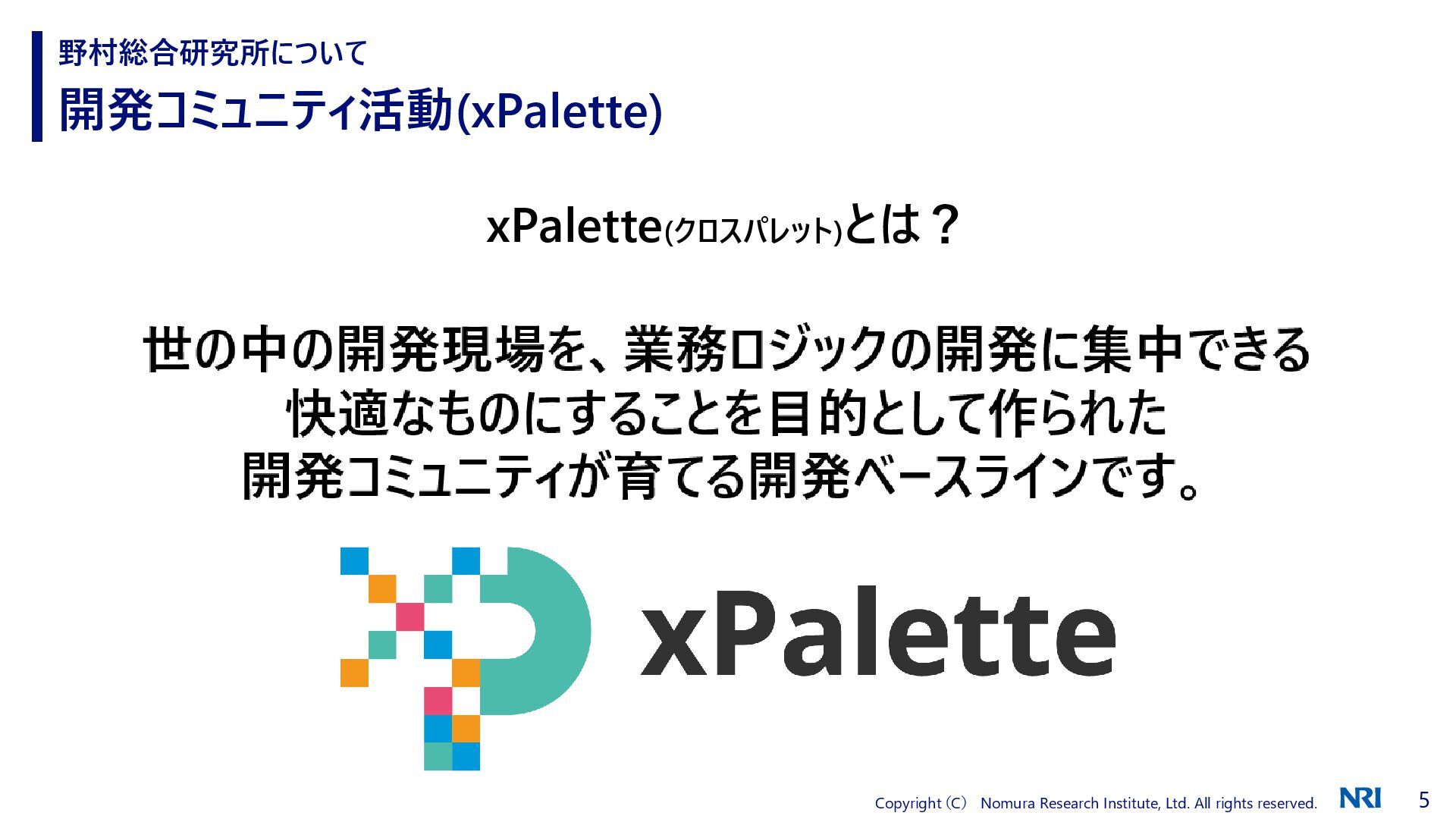 開発コミュニティ活動(xPalette) 野村総合研究所について xPalette(クロスパレット)とは?