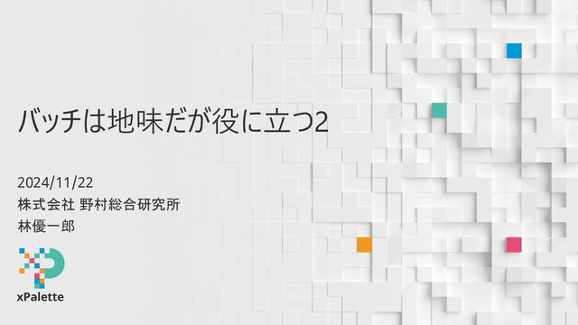 バッチは地味だが役に立つ2 2024/11/22 株式会社 野村総合研究所 林優一郎