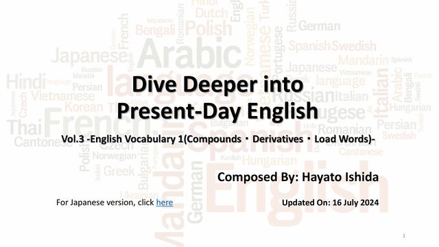 Dive Deeper into Present-Day English Vol.3 -English Vocabulary 1(Compounds・Derivatives・Load Words)-