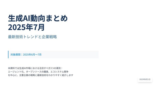 Google Microsoft コア戦略 モデル提供者から統合ワークプラットフ ォームへの転換 検索・クラウド・開発者ツール全体へのユビキ タス(遍在する)AI実装 Copilotを中心としたソフトウェアスタックへの AI統合 強み 強み フロンティアモデル性能で業界トップ 消費者からの高い認知(ChatGPTブラ ンド) 自律エージェント技術の先行 世界最大のユーザー接点(検索) 優れたAIインフラストラクチャ(TPU) 豊富な消費者データ活用 企業ソフトウェアでの圧倒的シェア OpenAIとの優先的パートナーシップ Office・Windows・Azureの連携 弱み 弱み 収益性・持続可能なビジネスモデル クラウドインフラへの依存 企業での浸透度がまだ限定的 ビジネスモデル(検索広告)への脅威 意思決定の遅さと戦略の二重性 ベンチマークで競合に後れ 自社モデル開発への依存度が高い 消費者向けAIでの存在感の弱さ OpenAIとの関係変化リスク 最新機能 (2025年6-7月) 最新機能 ChatGPT agent コネクタ機能 ディープリサーチ レコードモード ブラウザ開発中(Google検索の迂回) AI検索モード Opal(ノーコード) NotebookLM進化 インドでのローカル化 クリックスルー率50%減少の課題も Edgeブラウザ Copilotモード Copilot Appearance(表情) シンガポールラボ開設 OpenAIとの契約再交渉の動き エコシステム施策 エコシステム施策 Oracleとの提携(Stargate) GPT Storeの拡大 IPO検討の報道 地域特化開発者支援 Generative AIコンソール提供 AIスタートアップ支援拡大 エンタープライズ向けCopilotの拡充 Azure AIサービスの統合深化 ISV/SIパートナープログラム 重点競争領域 重点競争領域 エージェント自律性 タスク自動実行・知的作業の効率化 検索体験の再定義 検索プロセスとUI/UXの全面刷新 企業ワークフロー統合 Office/Azureエコシステムとの結合 競争環境変化の観点 戦略的差別化 3社とも独自のエコシステム構築とプラットフォーム化競争へシフ ト。単なるモデル性能から脱却し、独自価値の創出に注力。 パートナーシップの変化 OpenAIのOracle接近、MicrosoftのOpenAI契約再交渉など、従 来の提携関係に流動性が発生。複雑な提携網が形成される兆 候。 開発者戦略 3社とも開発者獲得を最重視。Google AI League、OpenAIの Plugins強化、MicrosoftのISVプログラムなど開発者向け施策を強 化。