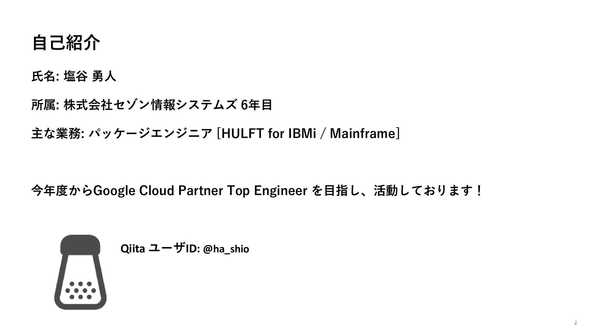 for IBMi / Mainframe] 今年度からGoogle Cloud Partner Top Engineer を目指し、活動しております! Qiita ユーザID: @ha_shio