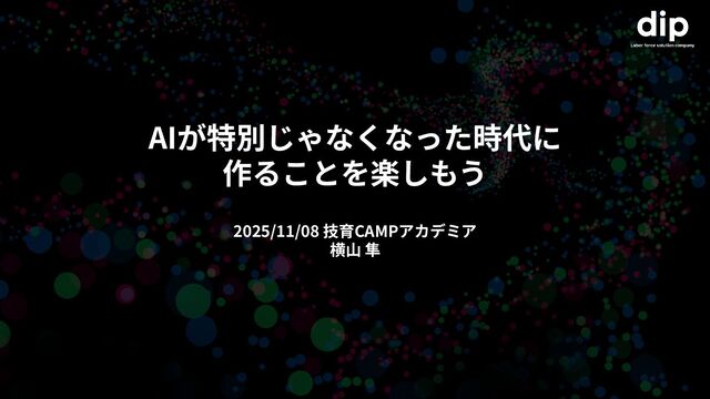 AIが特別じゃなくなった時代に 作ることを楽しもう 2025/11/08 技育CAMPアカデミア 横⼭ 隼
