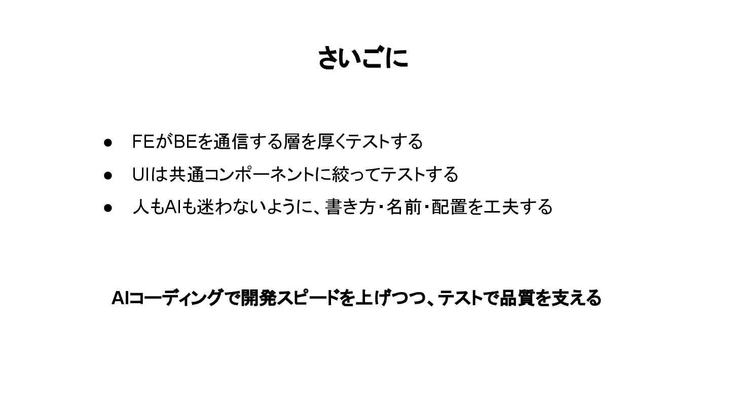 "Components/Button", component: Button, args: { label: "Click Me" }, }; export default meta; type Story = StoryObj<typeof Button>; export const Primary: Story = { args: { disabled: false }, }; export const Disabled: Story = { args: { disabled: true, label: "Disabled" }, }; it("Primary: ~~~~", async () => { render(<Primary onClick={onClick} />); // 略 expect(onClick).toHaveBeenCalledTimes(1); }); it("Disabled: ~~~~", async () => { render(<Disabled onClick={onClick} />); // 略 expect(onClick).not.toHaveBeenCalled(); }); Storybook テスト