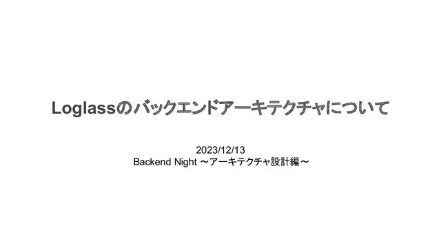 2023/12/13 Backend Night 〜アーキテクチャ設計編〜 Loglassのバックエンドアーキテクチャについて