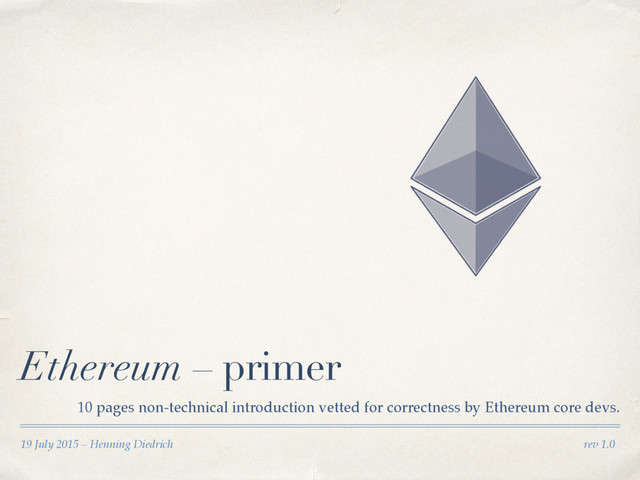 • Napster: allowing for new, arbitrary markets, Ethereum will enable the