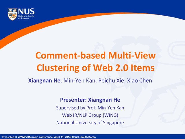 #WWW #WWW14 #WWW2014 #NUS #WING-NUS