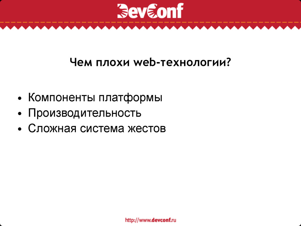 Чем плохи web-технологии? • Компоненты платформы • Производительность • Сложная