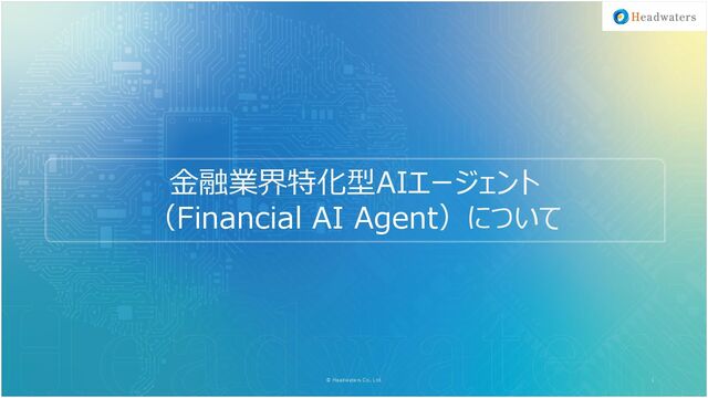 © Headwaters Co., Ltd. 1 金融業界特化型AIエージェント (Financial AI Agent)について